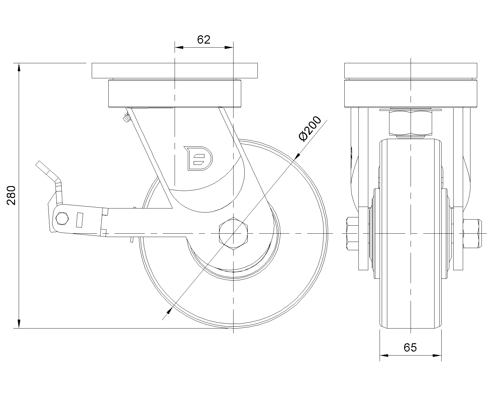 Lắp đế, khoảng cách lỗ 140x105mm Lõi bánh xe và gai bánh xe bằng nhựa nhiệt dẻo, màu trắng ngà Vòng bi bánh xe—vòng bi côn |