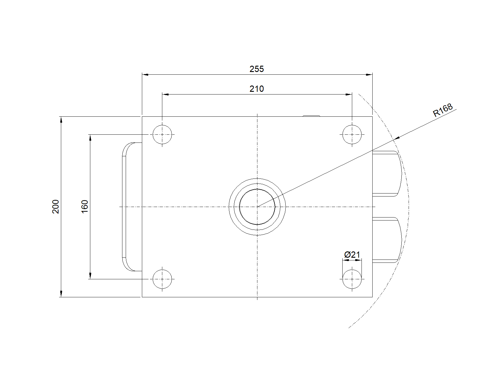 Lắp đế, khoảng cách lỗ 210x160 Lõi bánh xe bằng gang, gai polyurethane chất lượng cao, phay màu đỏ tía Vòng bi bánh xe - vòng bi góc |