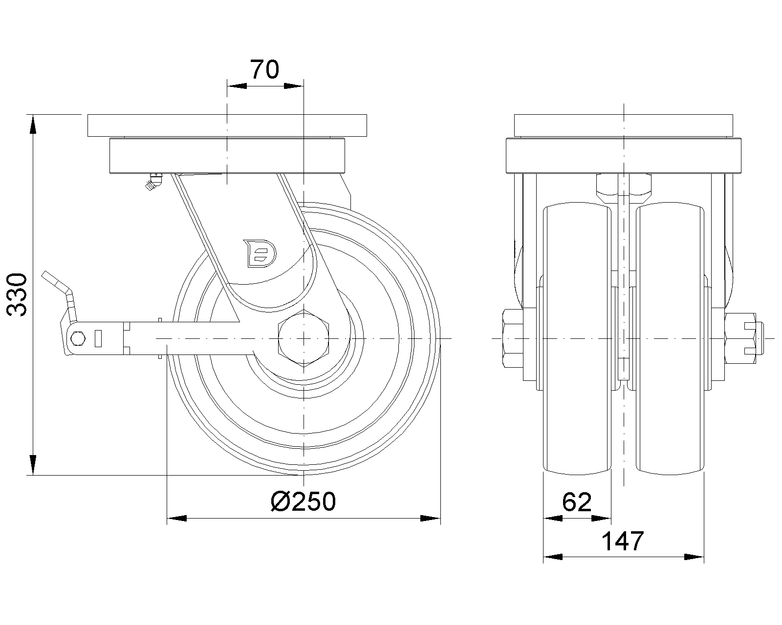 | VQPU Bánh xe (nâu phẳng) Đường kính bánh xe × Chiều rộng bánh xe 250 x 80mm |
