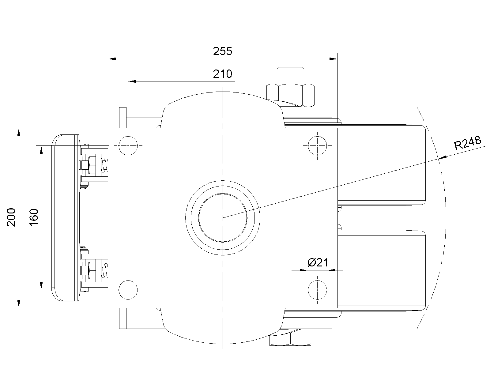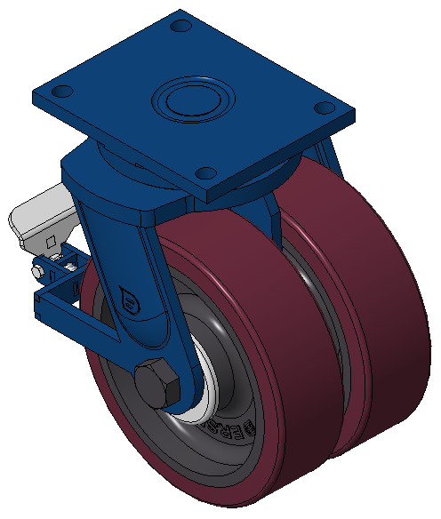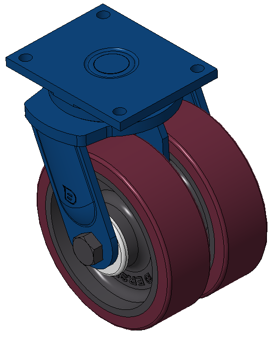 Lắp đế, khoảng cách lỗ 210x160 Lõi bánh xe bằng gang, gai polyurethane chất lượng cao, phay màu đỏ tía Vòng bi bánh xe - vòng bi góc |