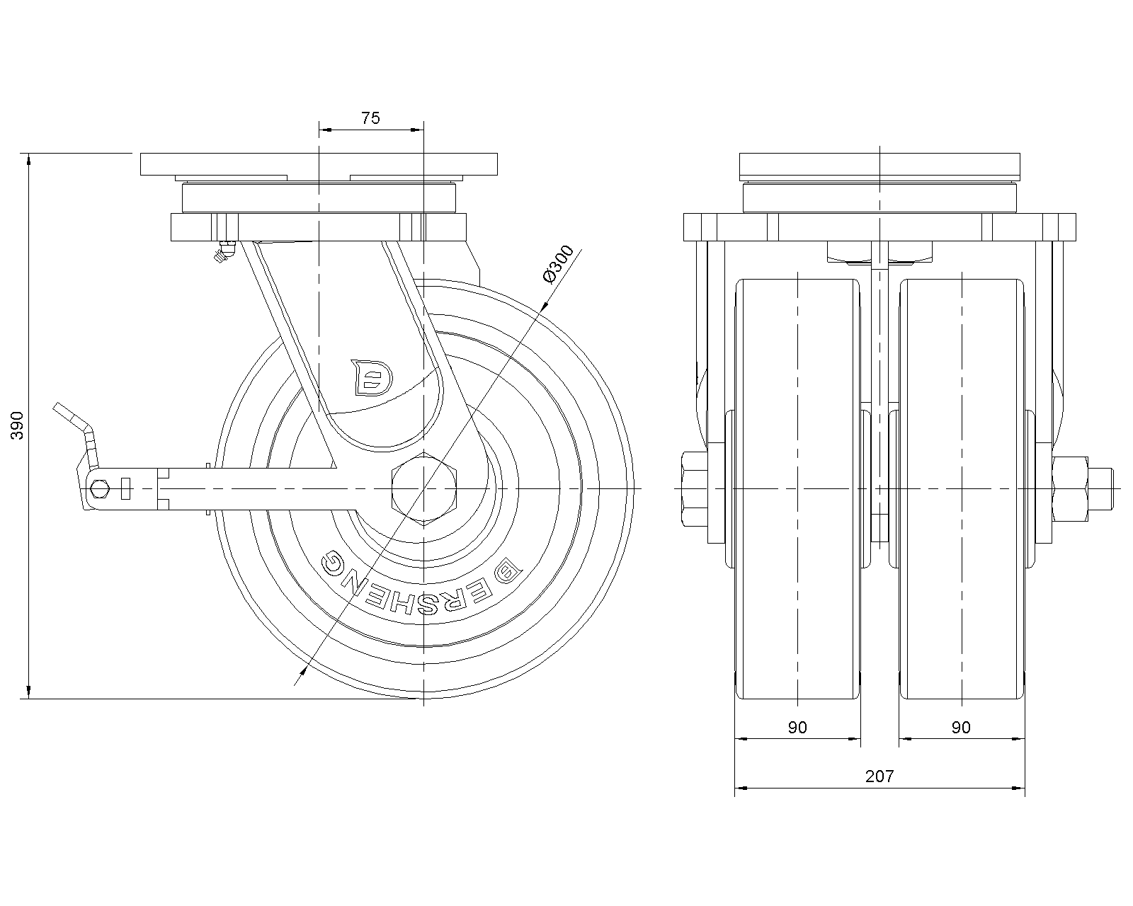 | VXPU Đường kính bánh xe × Chiều rộng bánh xe 300 x 90mm |