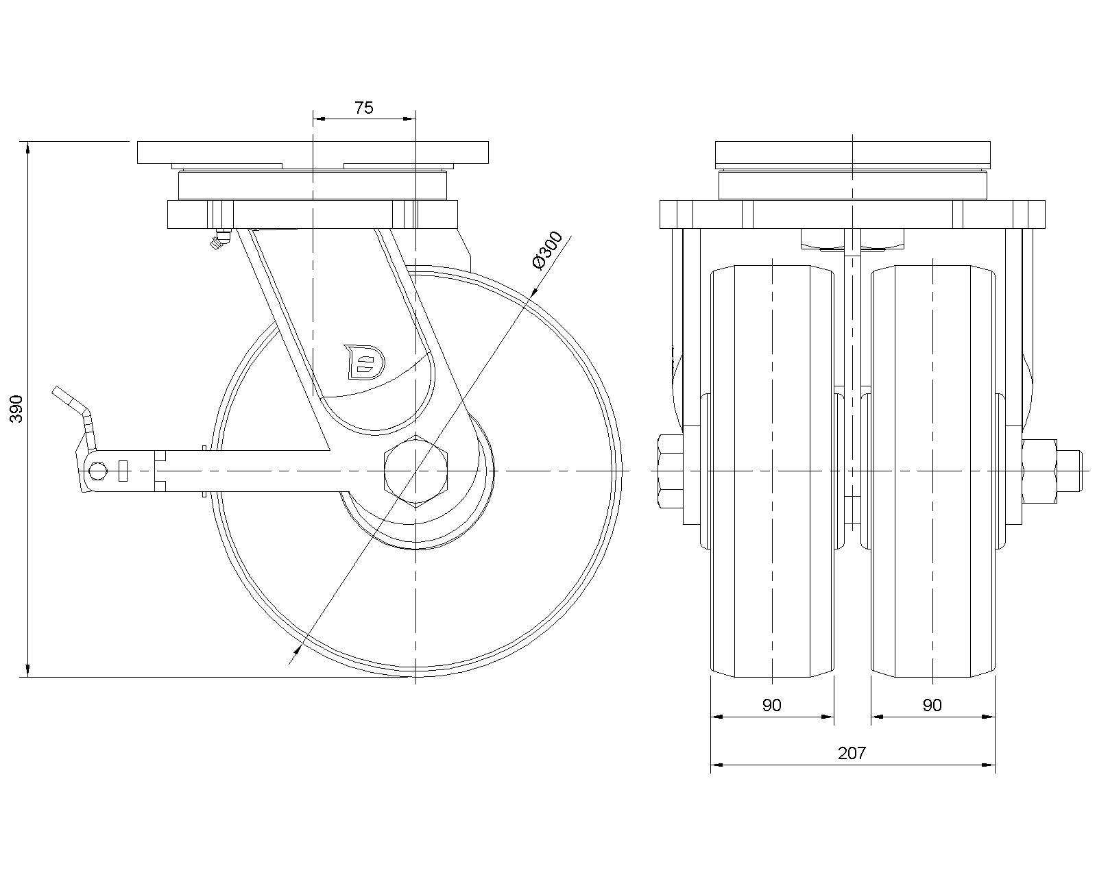 | MC Bánh xe nylon (màu trắng gạo) Đường kính bánh xe × Chiều rộng bánh xe 300 x 90mm |