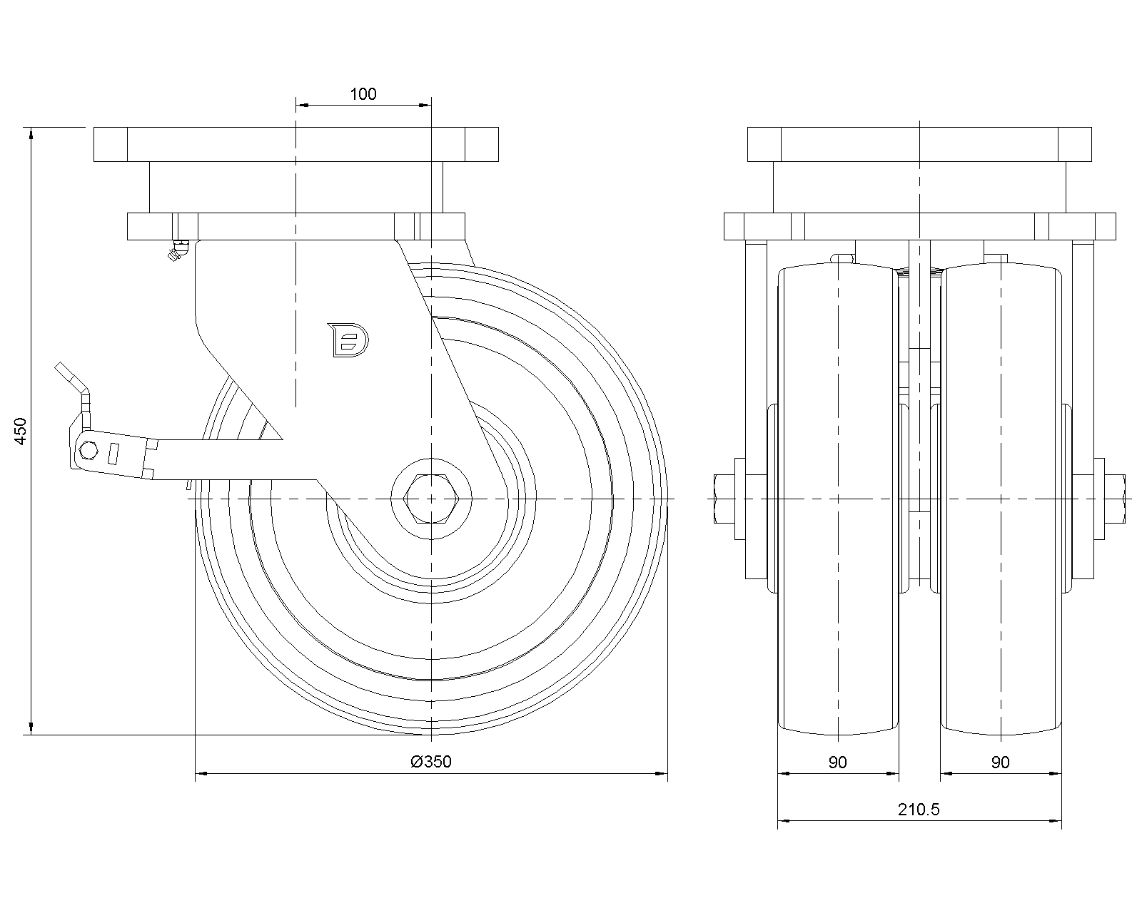 | VXPU Đường kính bánh xe × Chiều rộng bánh xe 350 x 90mm |
