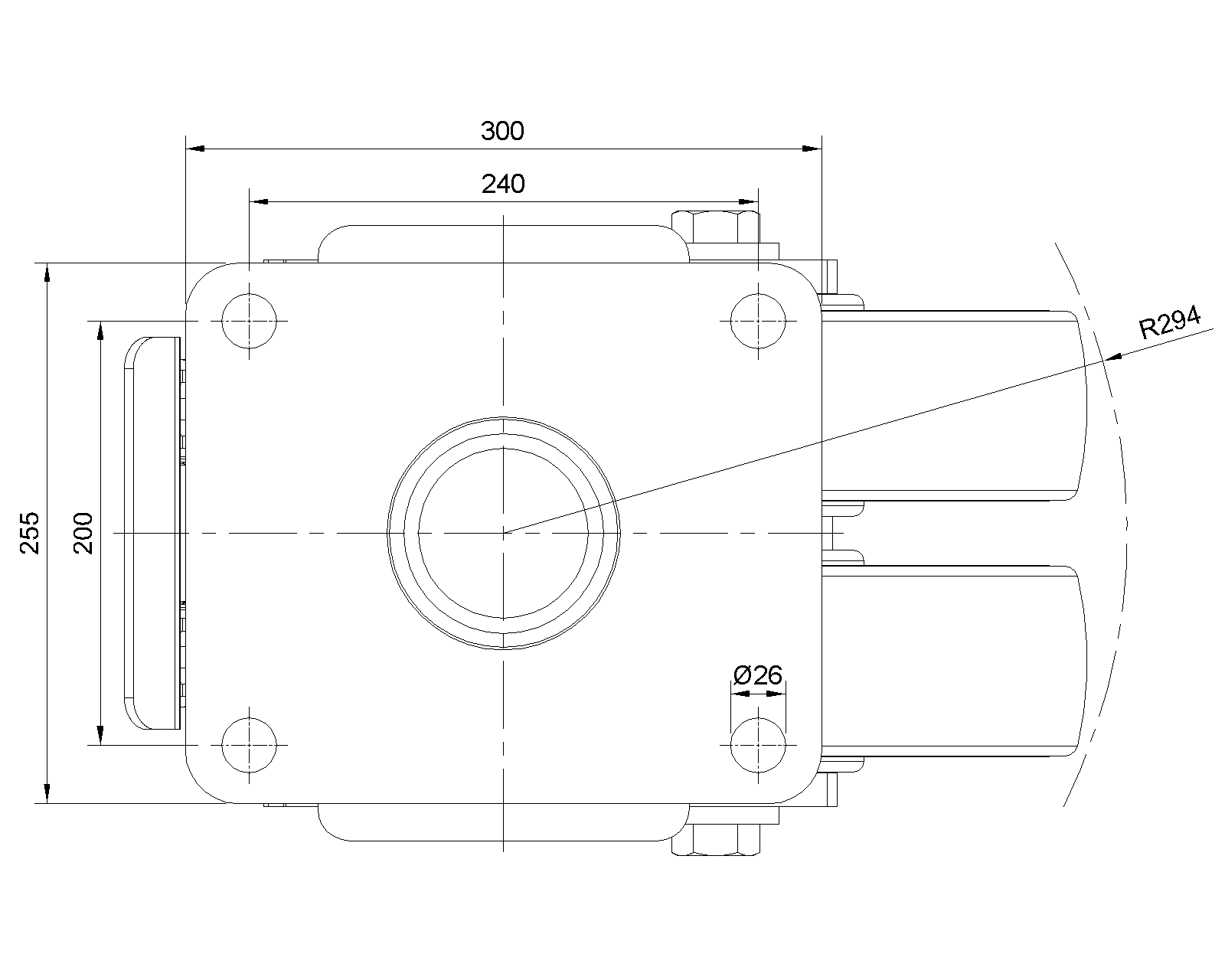 Lắp đế, khoảng cách lỗ 210x160 Lõi bánh xe bằng gang, gai polyurethane chất lượng cao, phay màu đỏ tía Vòng bi bánh xe - vòng bi góc |