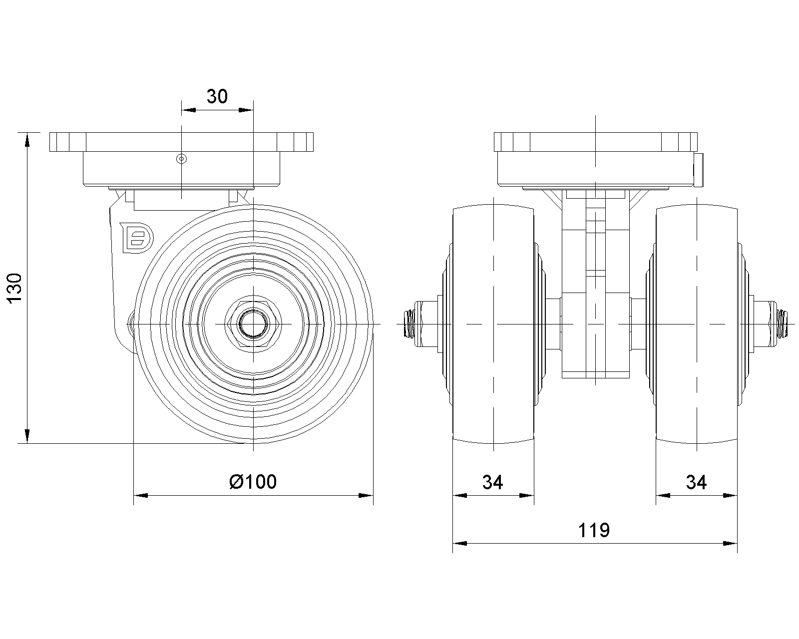 | QPU轮(褐弧) 轮径 × 轮宽 100 x 34mm |