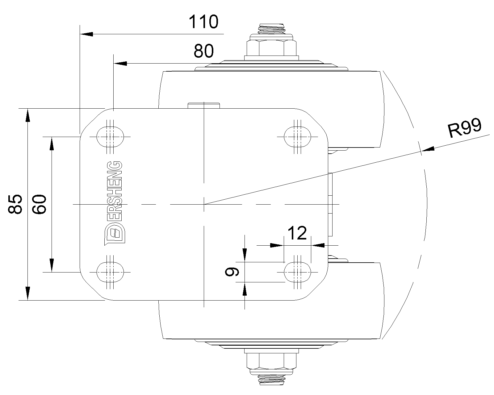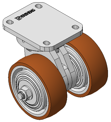 活动式脚轮,焊接钢板架,表面镀锌 底板式安装装置,孔距80x60 铸铁制轮芯,高品质聚安酯轮面 铣褐色,轮子轴承—精密滚珠 |