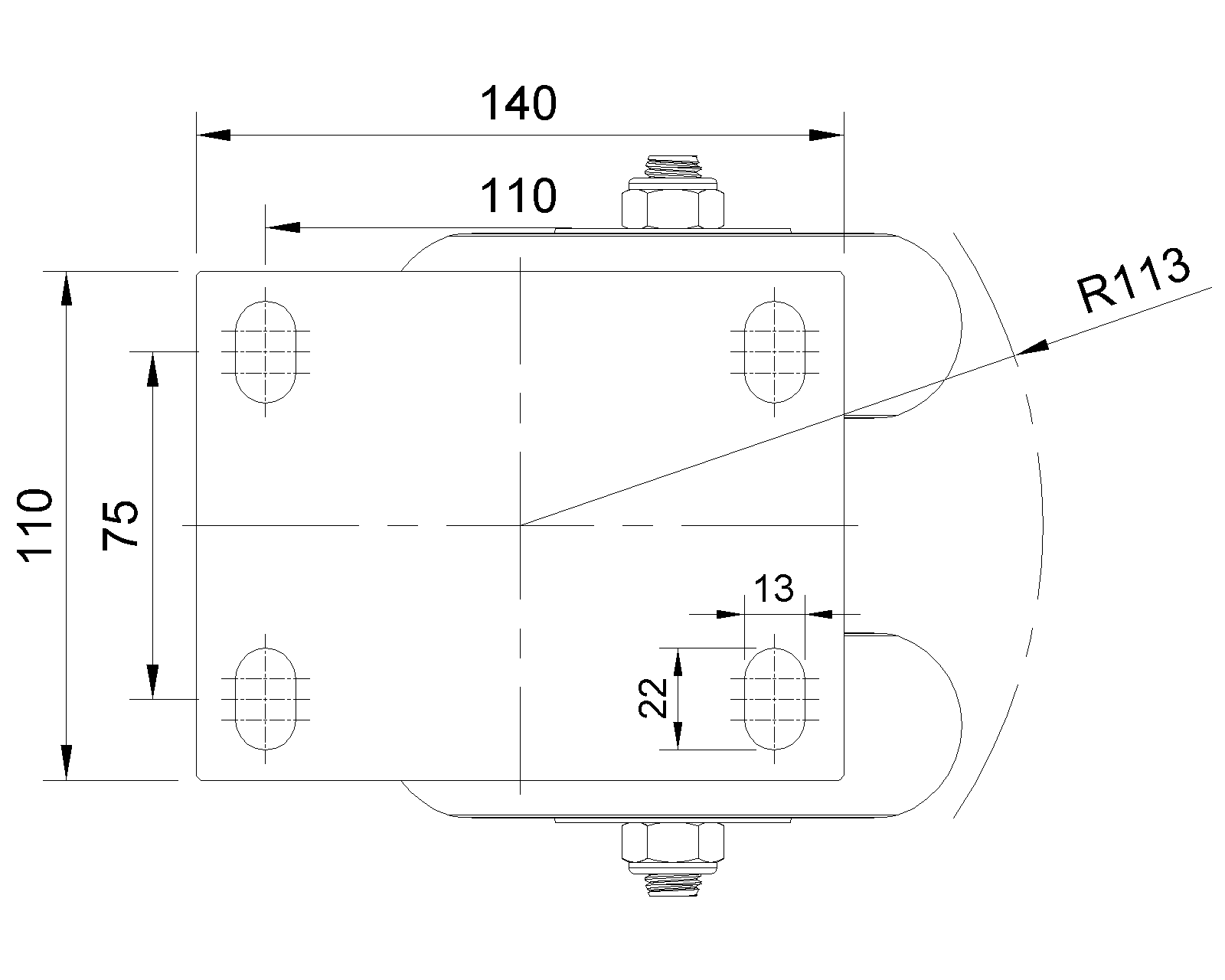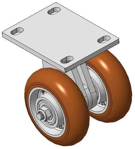 活动式脚轮,焊接钢板架,表面镀锌 底板式安装装置,孔距110x75 铸铁制轮芯,高品质聚安酯轮面 铣褐色,轮子轴承—精密滚珠 |