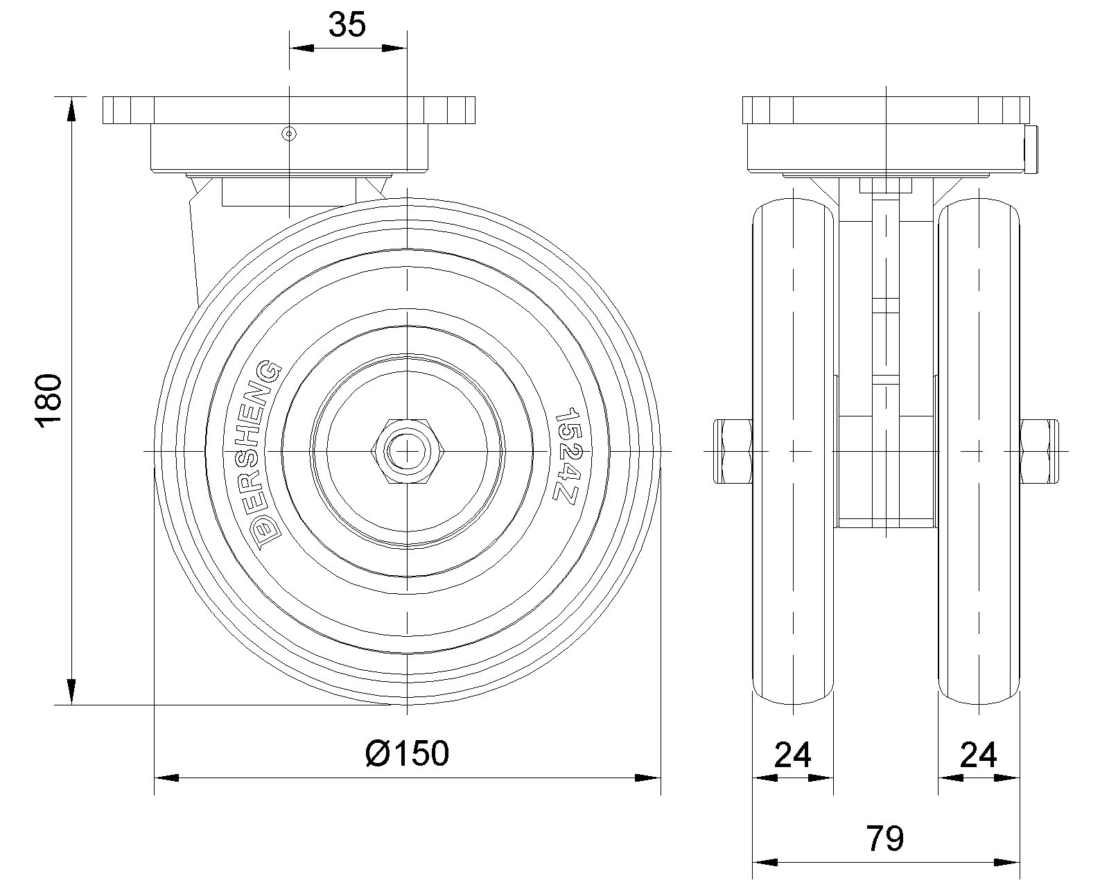 | ZQPU轮(铣褐)轮径×轮宽 150x 24mm |