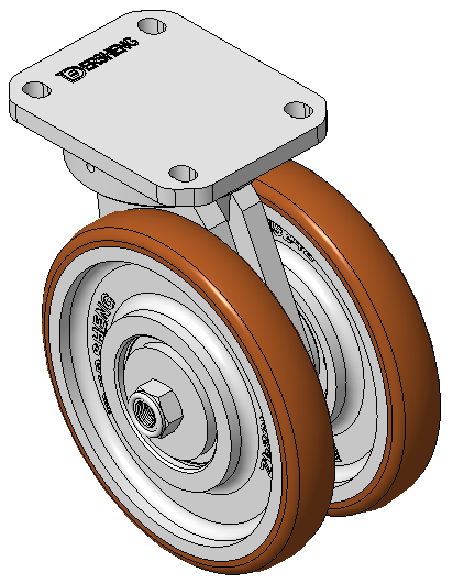 活动式脚轮,焊接钢板架,表面镀锌 底板式安裝裝置,孔距110x75 铸铁制轮芯,高品质聚氨酯轮面,铣褐色 轮子轴承—特制的精密滾珠,降低运转阻力 ZQPU双轮,符合人体工学,更容易启动及转动 |