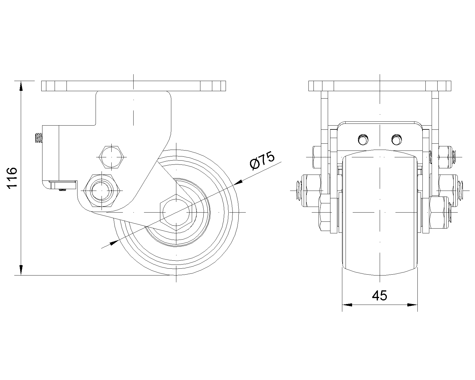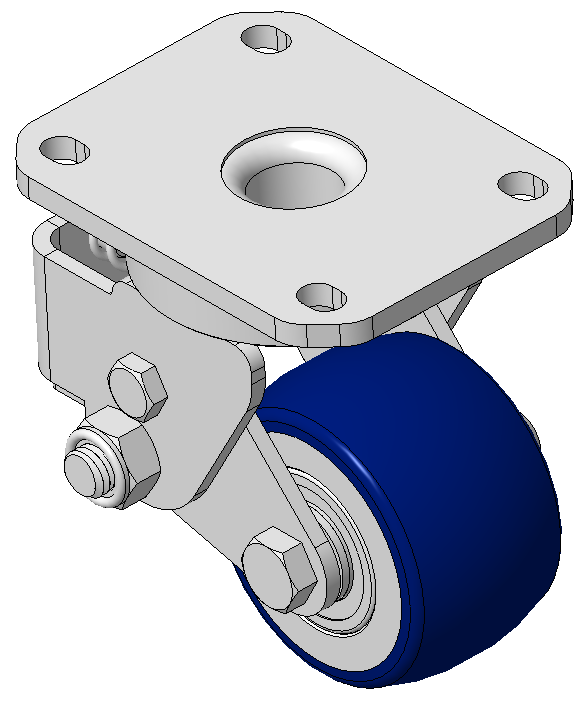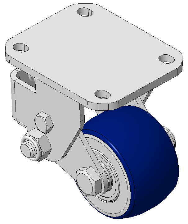 固定式弹簧加载脚轮,焊接钢板架 表面镀锌,底板式安装,孔距80x60 铸铁制轮芯,高品质聚氨酯轮面 铣蓝色,轮子轴承—精密滚珠 |