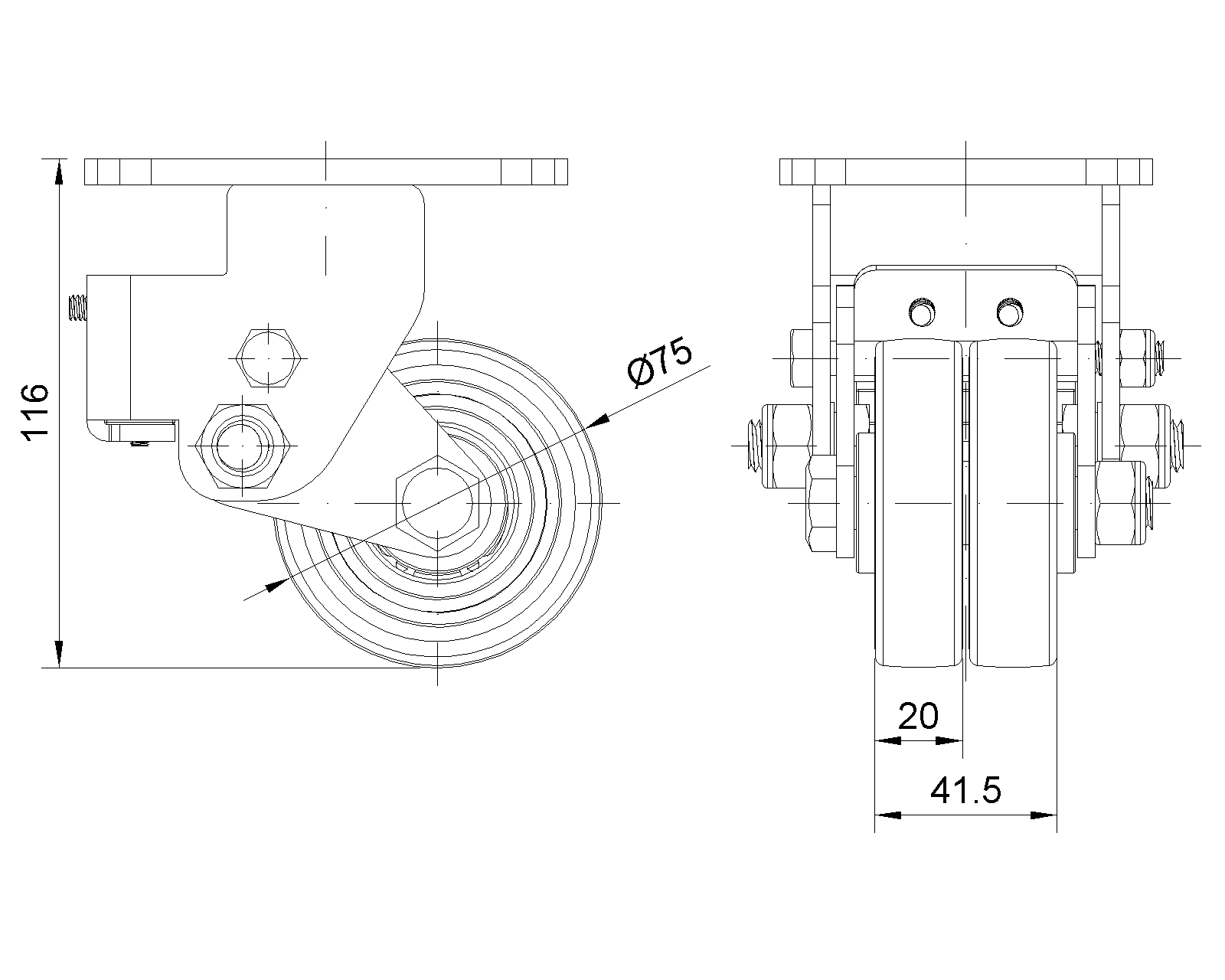 | 抗静电ZQPU轮(铣黑)轮径×轮宽 75x 20(41.5)mm |
