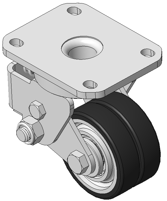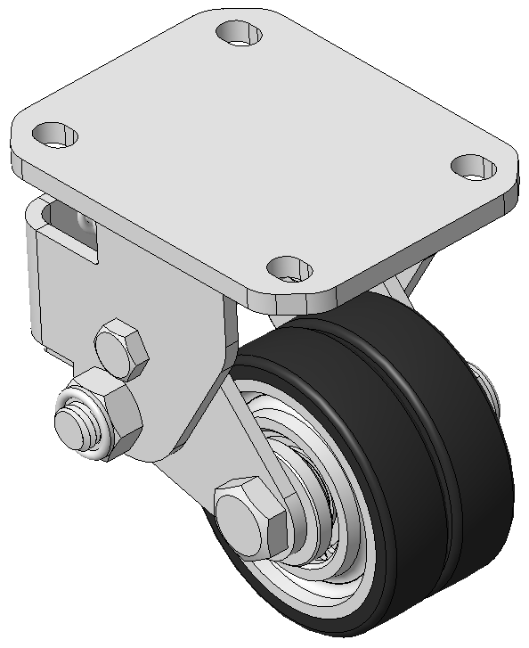 固定式弹簧加载脚轮,焊接钢板架 表面电镀,底板式安裝,孔距80x60 铸铁制轮芯,高品质聚氨酯轮面,铣黑色 轮子轴承—特制的精密滾珠,降低运转阻力 ZQPU双轮,符合人体工学,更容易启动及转动 |