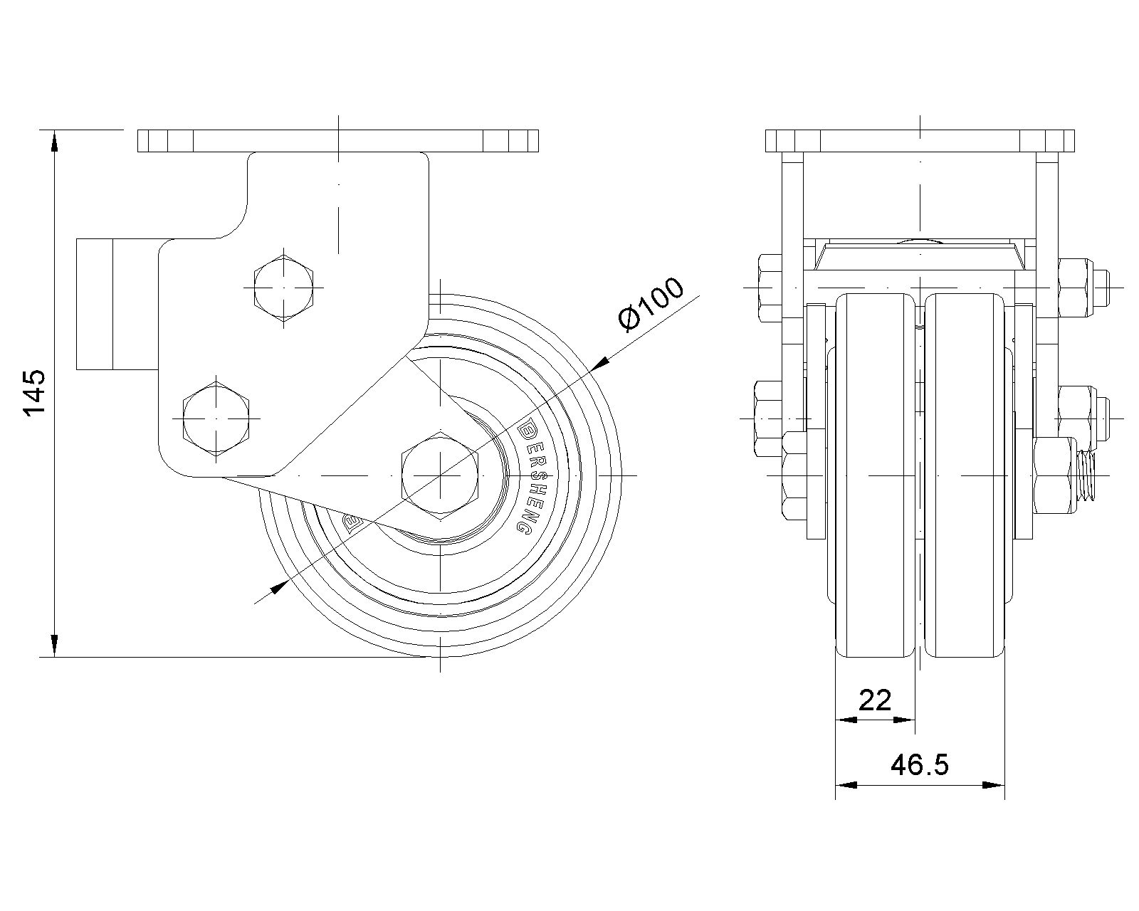 | ZQPU轮(蓝弧)轮径×轮宽 100x 22( 46.5)mm |