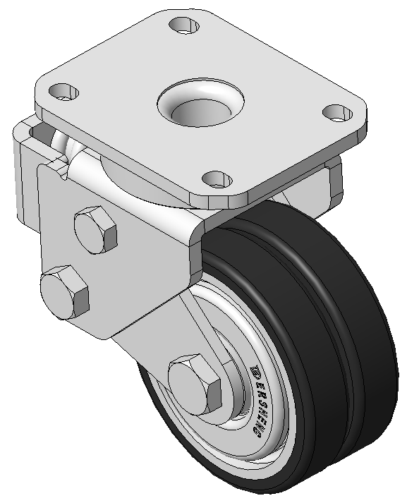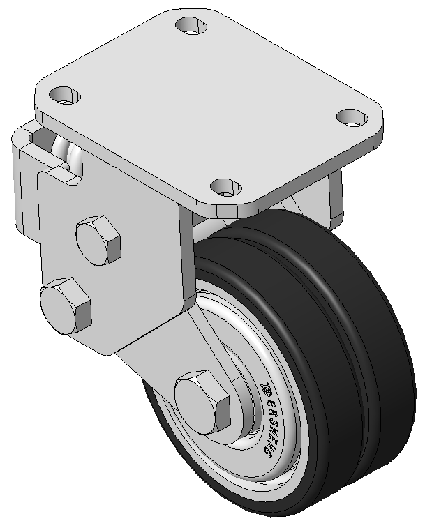 活动式弹簧加载脚轮,焊接钢板架 表面电镀,底板式安裝,孔距80x60 铸铁制轮芯,高品质聚氨酯轮面,铣黑色 轮子轴承—特制的精密滾珠,降低运转阻力 ZQPU双轮,符合人体工学,更容易启动及转动 |