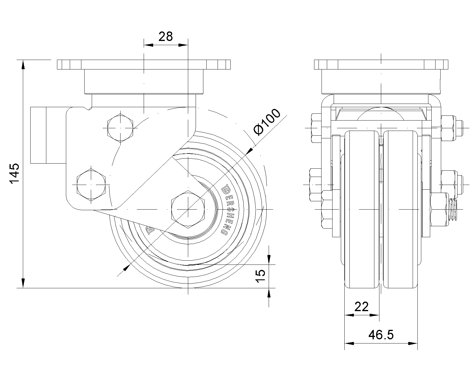 | 抗静电ZQPU轮(铣黑)轮径×轮宽 100x 22(46.5)mm |