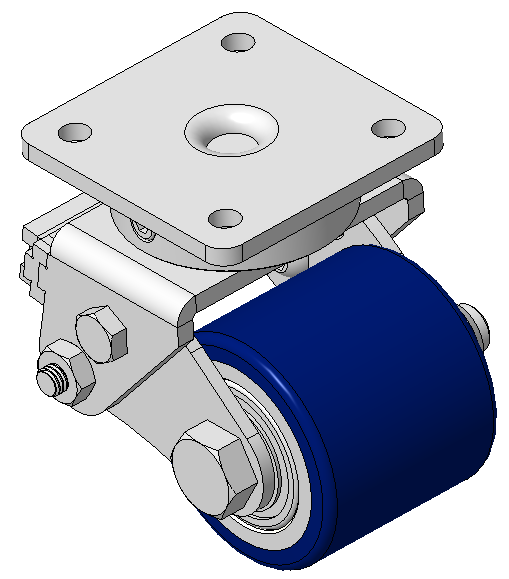 表面镀锌,底板式安装装置,孔距42.5x42.5 铸铁制轮芯,高品质聚氨酯轮面 铣蓝色,轮子轴承—精密滚珠 |