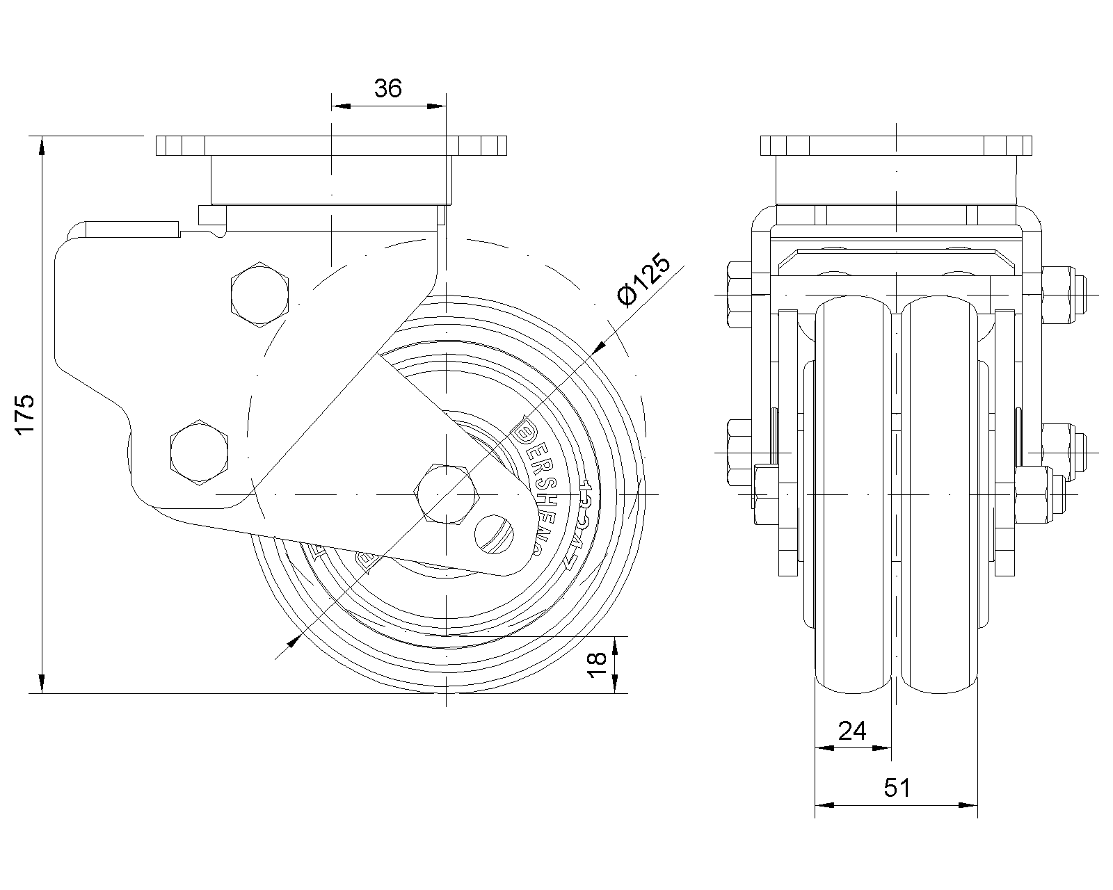 | ZQPU轮(褐弧)轮径×轮宽 125 x 24(51)mm |