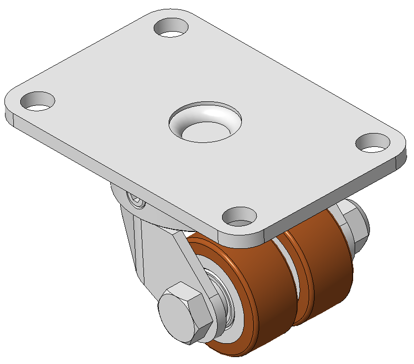 活动式脚轮,焊接钢板架,表面镀锌 底板式安裝裝置,孔距73x44 铸铁制轮芯,高品质聚氨酯轮面,铣褐色 轮子轴承—特制的精密滾珠,降低运转阻力 ZQPU双轮,符合人体工学,更容易启动及转动 |