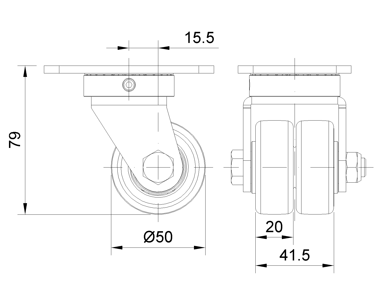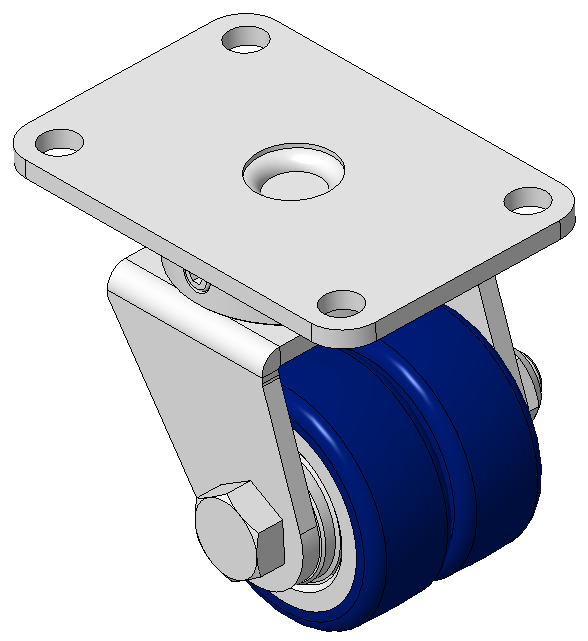 活动式脚轮,焊接钢板架,表面镀锌 底板式安裝裝置,孔距73x44 铸铁制轮芯,高品质聚氨酯轮面,铣蓝色 轮子轴承—特制的精密滾珠,降低运转阻力 ZQPU双轮,符合人体工学,更容易启动及转动 |