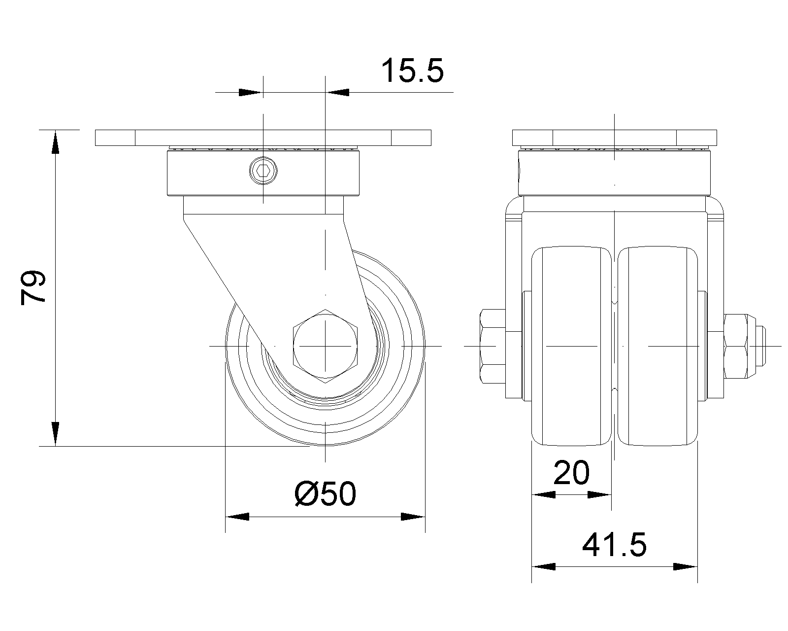活动式脚轮,焊接钢板架,表面镀锌 底板式安裝裝置,孔距70x37 铸铁制轮芯,高品质聚氨酯轮面,铣蓝色 轮子轴承—特制的精密滾珠,降低运转阻力 ZQPU双轮,符合人体工学,更容易启动及转动 |