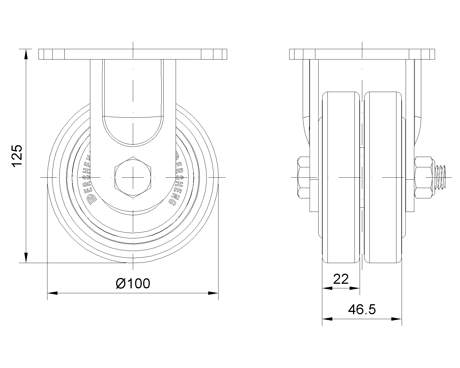 固定式脚轮,焊接钢板架,表面镀锌 底板式安裝裝置,孔距80x60 铸铁制轮芯,高品质聚氨酯轮面,铣褐色 轮子轴承—特制的精密滾珠,降低运转阻力 ZQPU双轮,符合人体工学,更容易启动及转动 |