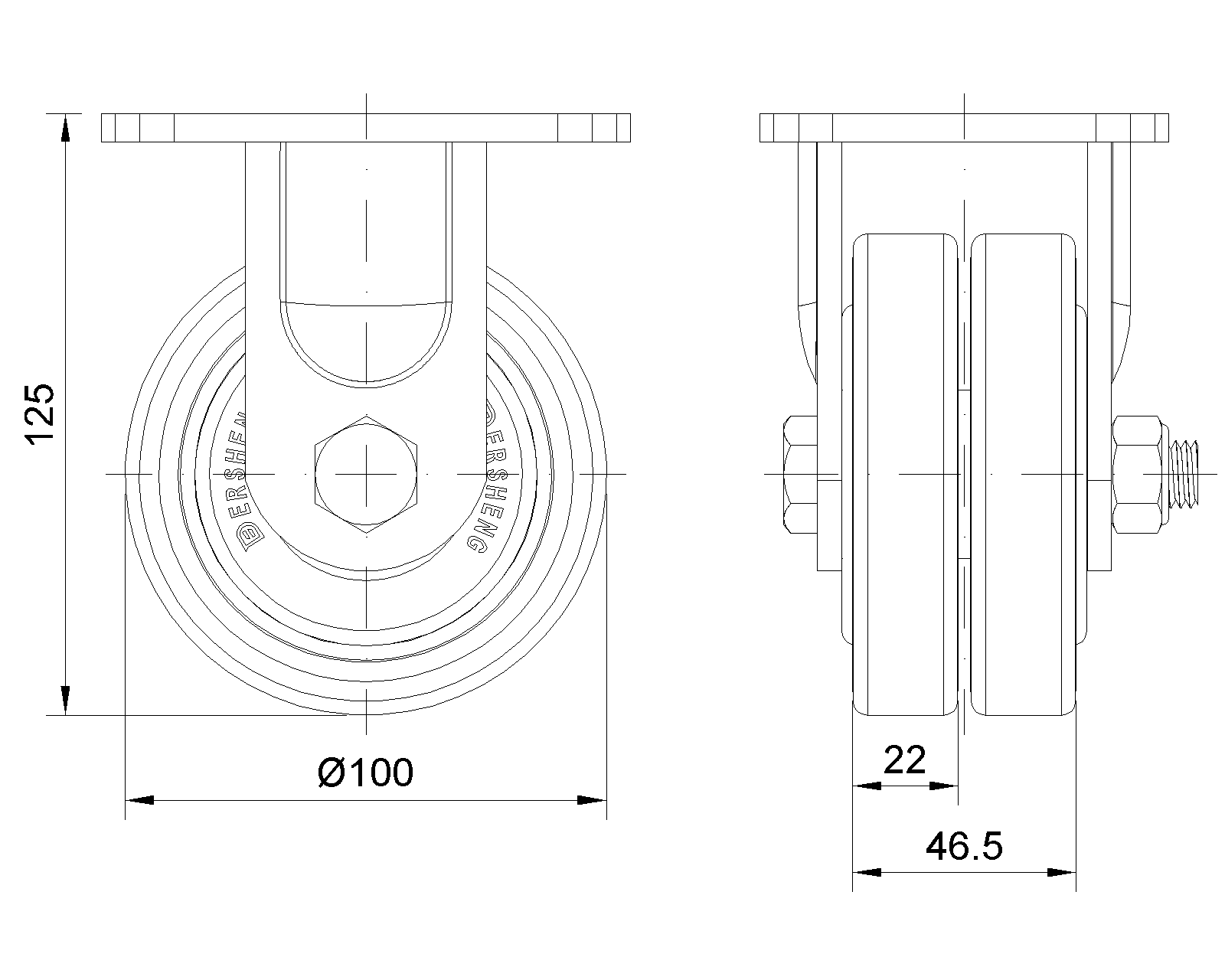 | 抗静电ZQPU轮(铣黑)轮径×轮宽 100x 22(46.5)mm |