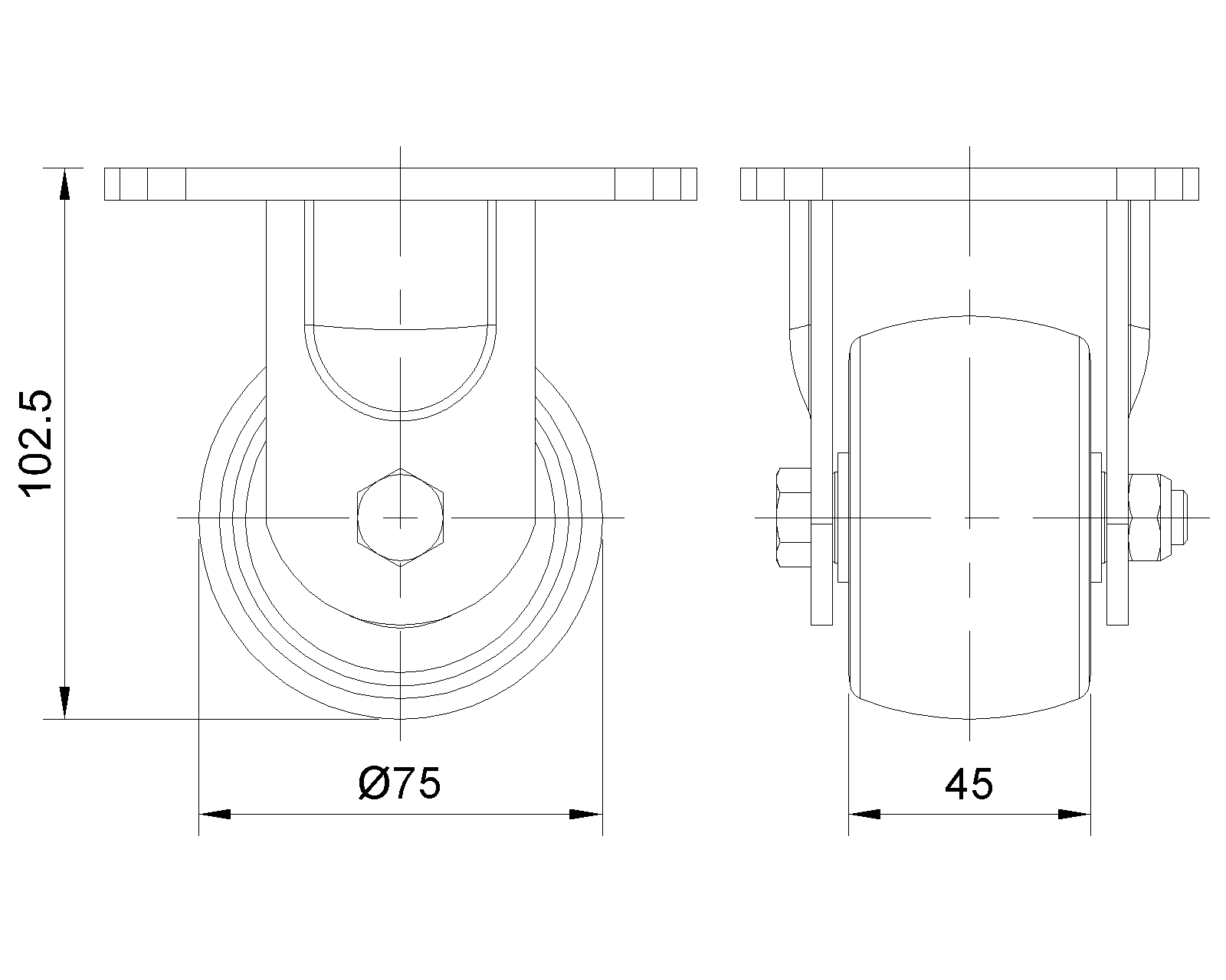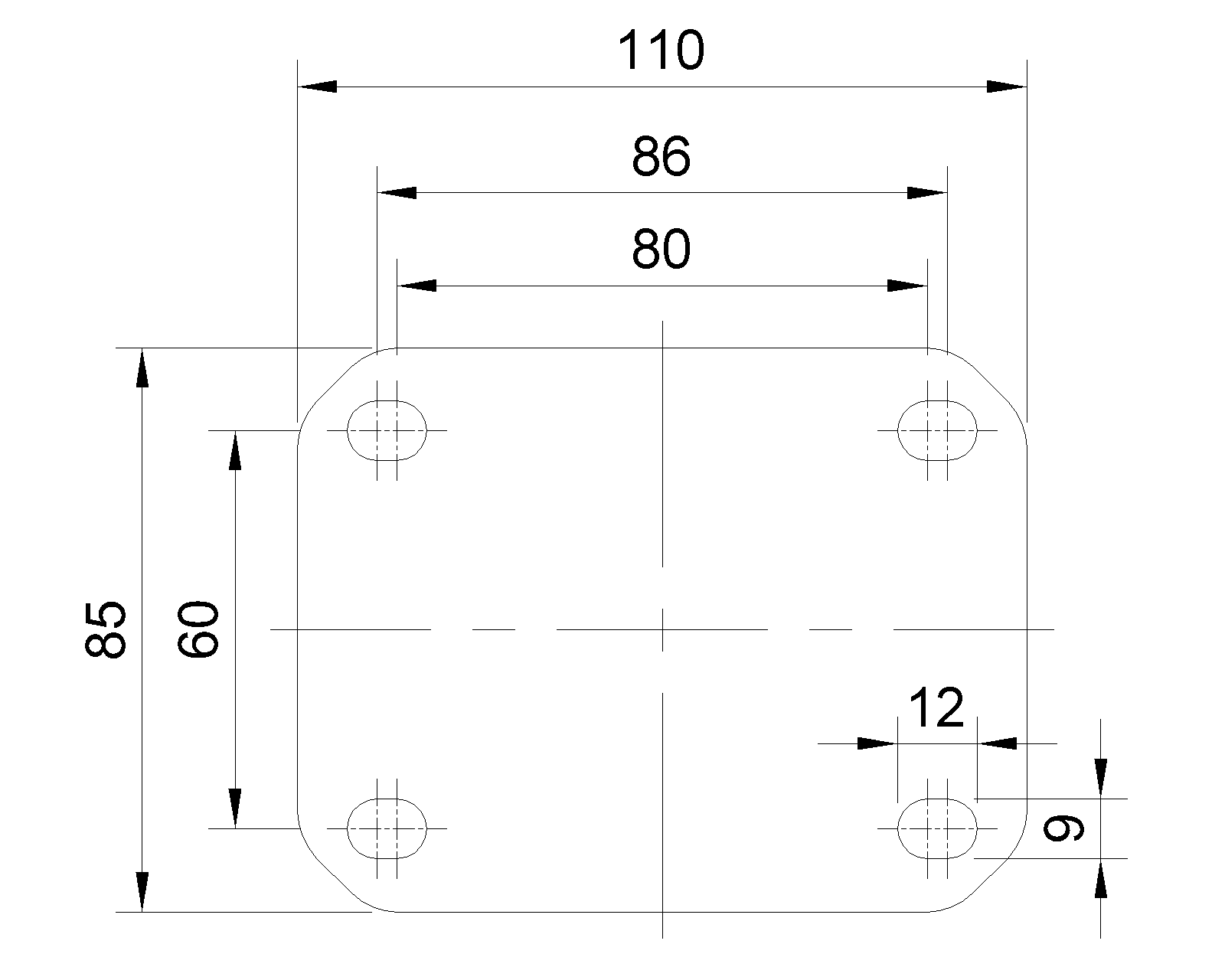 固定式脚轮,焊接钢板架,表面镀锌 底板式安装装置,孔距80x60 铸铁制轮芯,高品质聚氨酯轮面 铣蓝色,轮子轴承—精密滚珠 |
