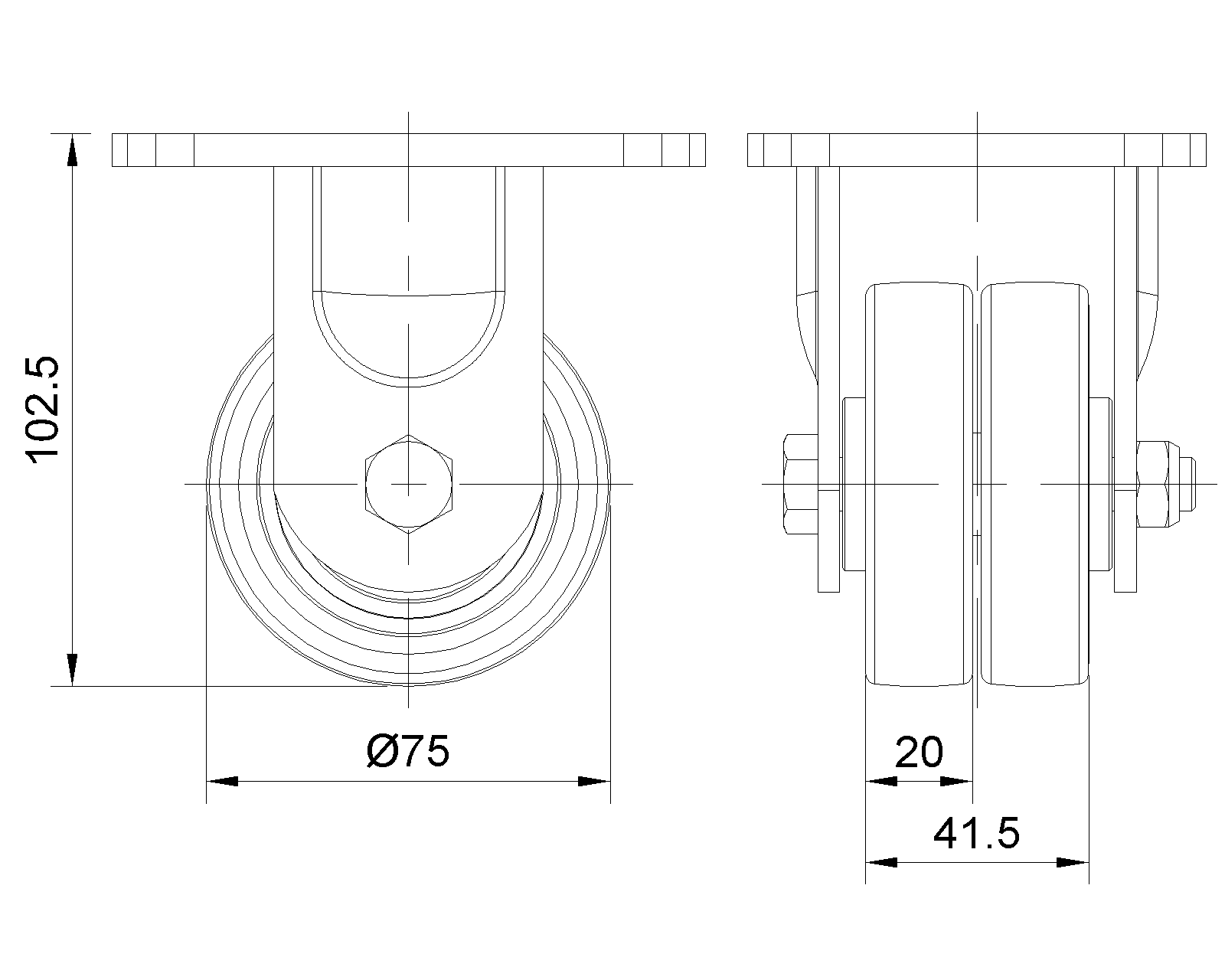| 抗静电ZQPU轮(铣黑)轮径×轮宽 75x 20(41.5)mm |