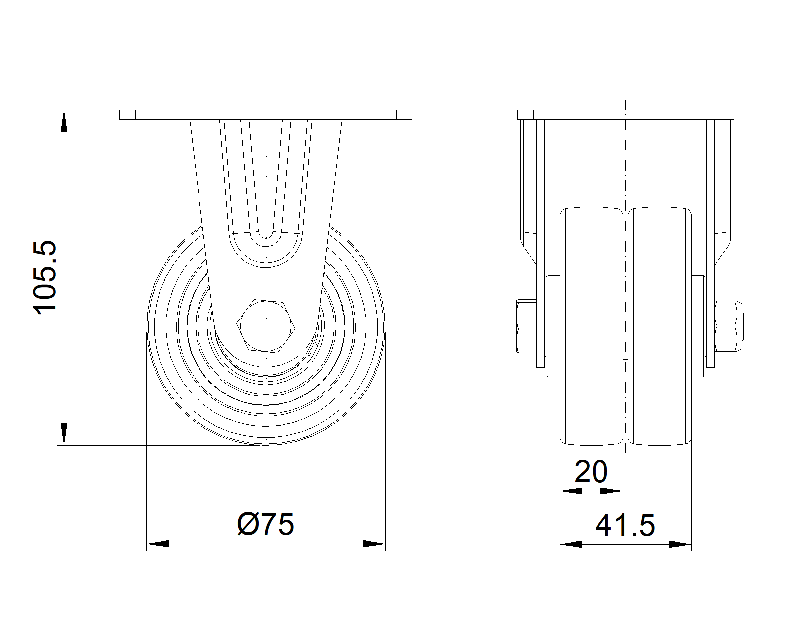 | 抗静电ZQPU轮(铣黑)轮径×轮宽 75x 20(41.5)mm |