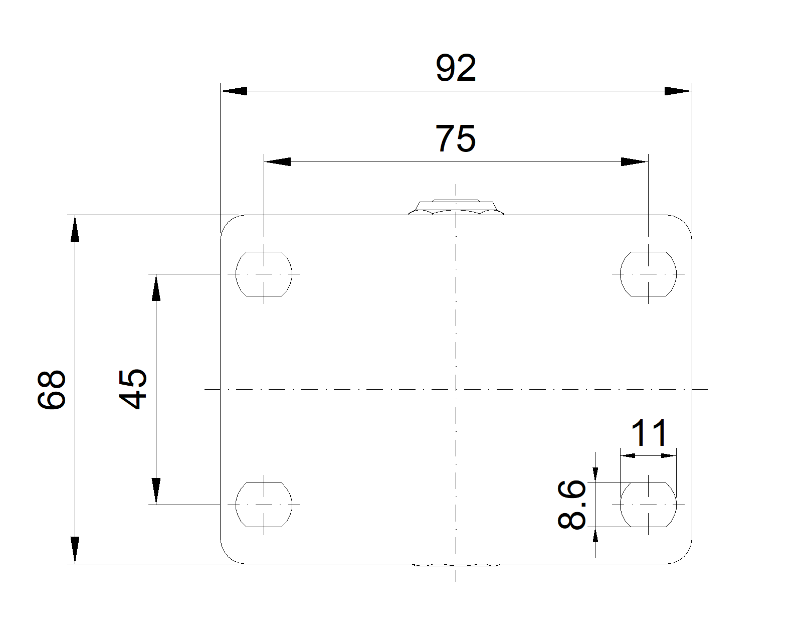 表面电镀,底板式安裝裝置,孔距75x45 铸铁制轮芯,高品质聚氨酯轮面,铣黑色 轮子轴承—特制的精密滾珠,降低运转阻力 ZQPU双轮,符合人体工学,更容易启动及转动 |