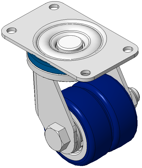 活动式脚轮,焊接钢板架,表面镀锌 底板式安裝裝置,孔距70X37 铸铁制轮芯,高品质聚氨酯轮面,铣蓝色 轮子轴承—特制的精密滾珠,降低运转阻力 ZQPU双轮,符合人体工学,更容易启动及转动 |