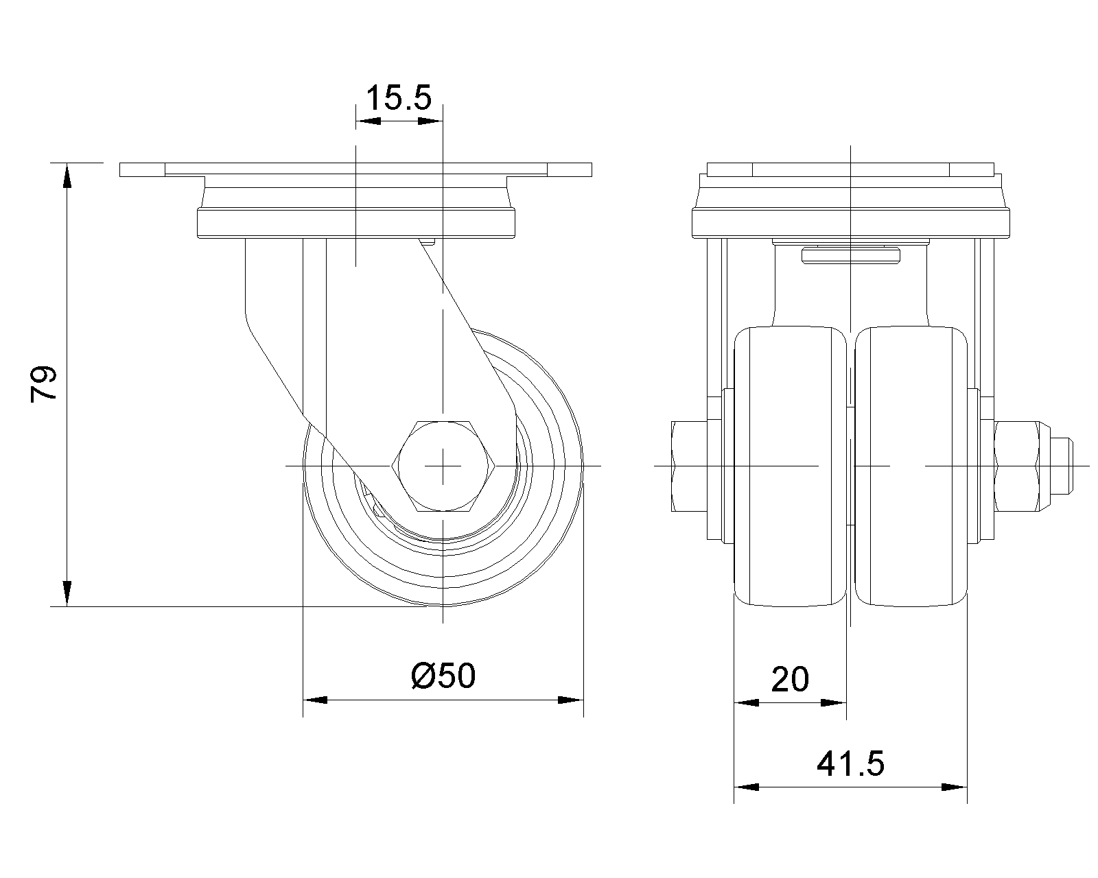 | ZQPU轮 (铣蓝)轮径 × 轮宽 50× 20(41.5) mm |