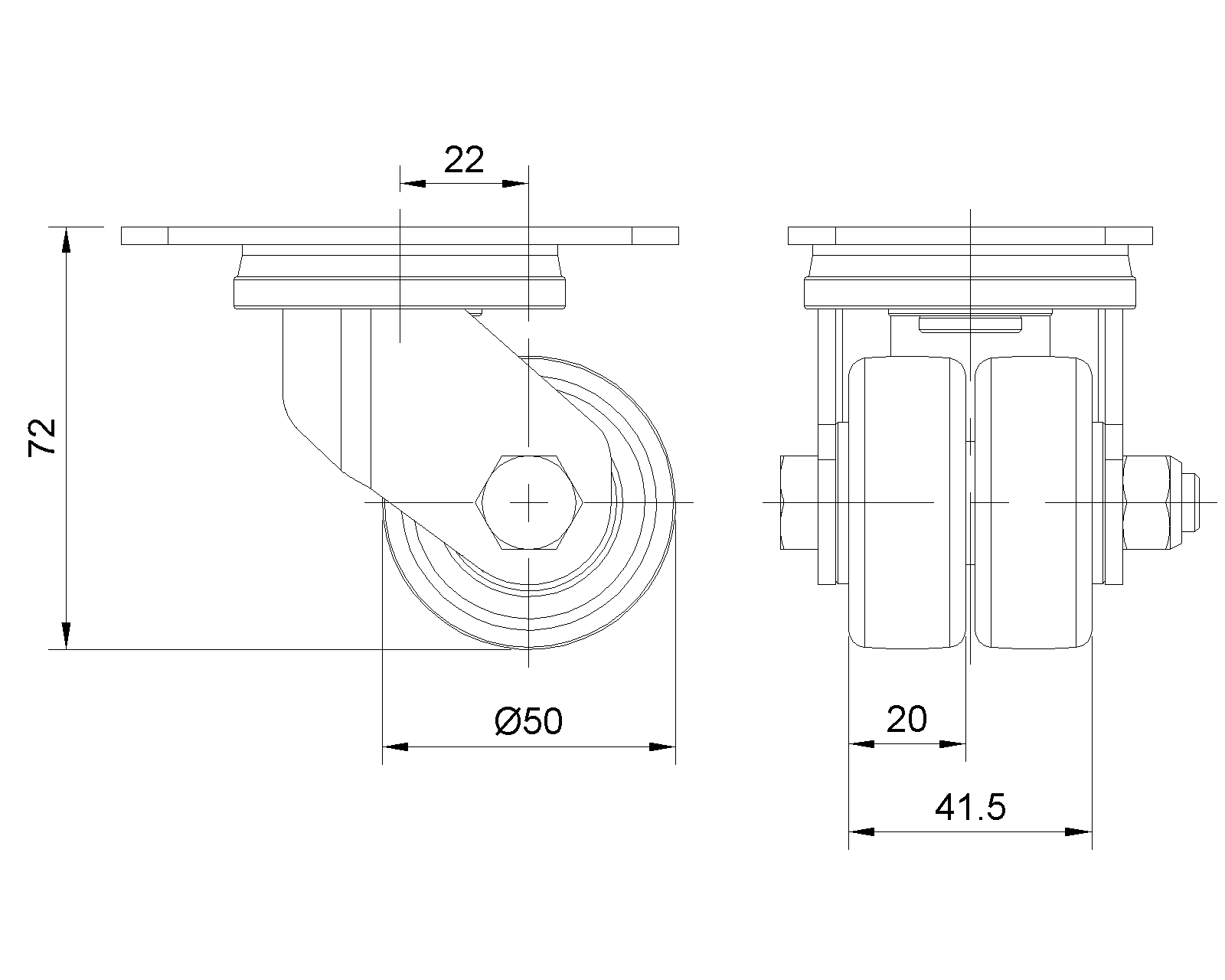 | 抗静电ZQPU轮(铣黑)轮径×轮宽 50x 20(41.5)mm |