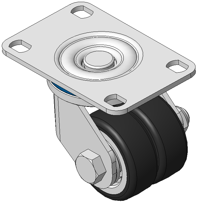 活动式脚轮,焊接钢板架,表面电镀 底板式安裝裝置,孔距75X45 铸铁制轮芯,高品质聚氨酯轮面,铣黑色 轮子轴承—特制的精密滾珠,降低运转阻力 ZQPU双轮,符合人体工学,更容易启动及转动 |