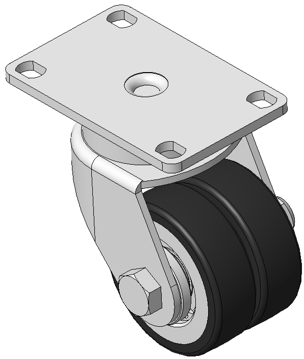 活动式脚轮,焊接钢板架,表面电镀 底板式安裝裝置,孔距75X45 铸铁制轮芯,高品质聚氨酯轮面,铣黑色 轮子轴承—特制的精密滾珠,降低运转阻力 ZQPU双轮,符合人体工学,更容易启动及转动 |