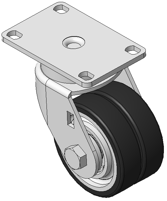 活动式脚轮,焊接钢板架,表面电镀 底板式安裝裝置,孔距75x45 铸铁制轮芯,高品质聚氨酯轮面,铣黑色 轮子轴承—特制的精密滾珠,降低运转阻力 ZQPU双轮,符合人体工学,更容易启动及转动 |