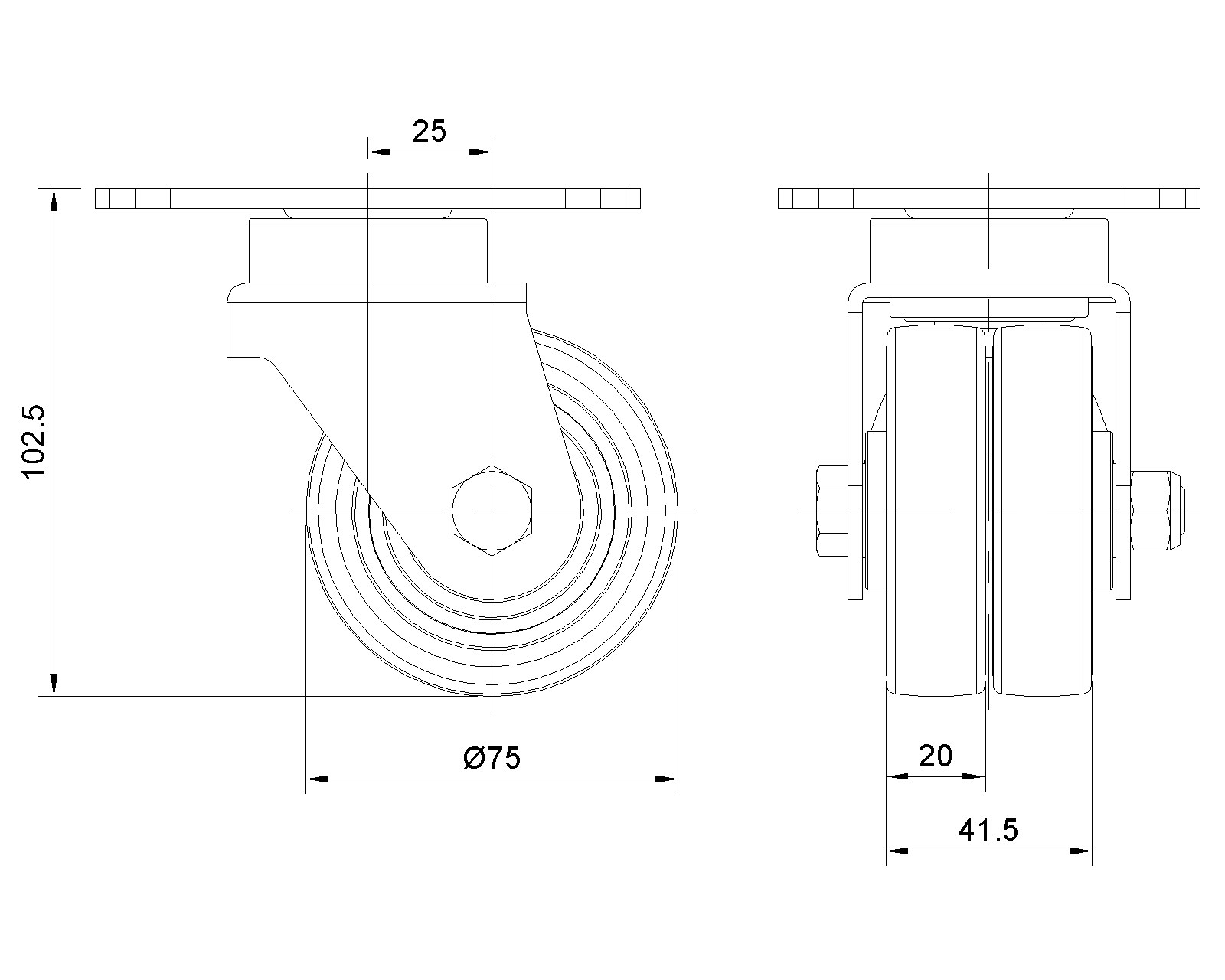 | 抗静电ZQPU轮(铣黑)轮径×轮宽 75x 20(41.5)mm |