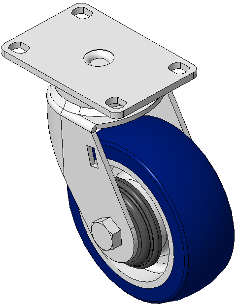 表面电镀,底板式安装装置,孔距75x45 铝制轮芯,高品质聚安酯轮面 蓝色,轮子轴承—精密滚珠。 |