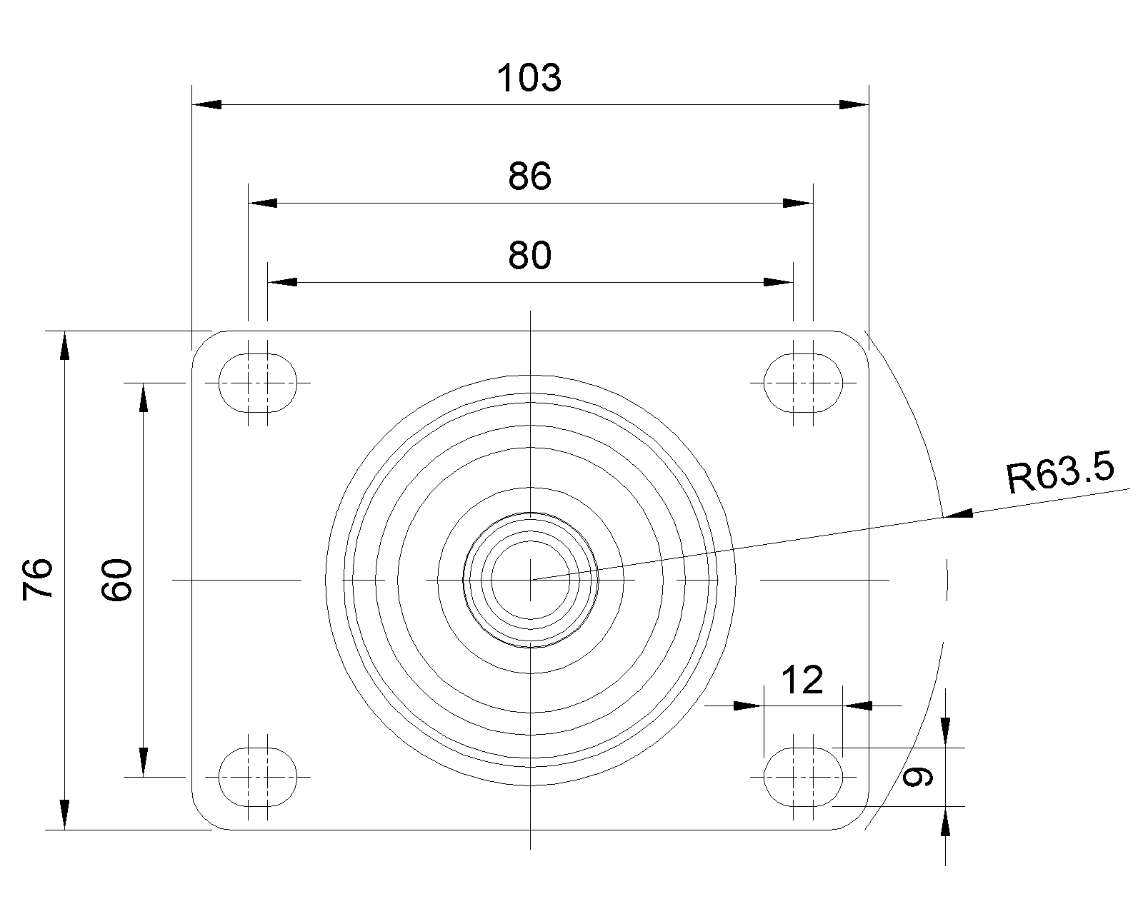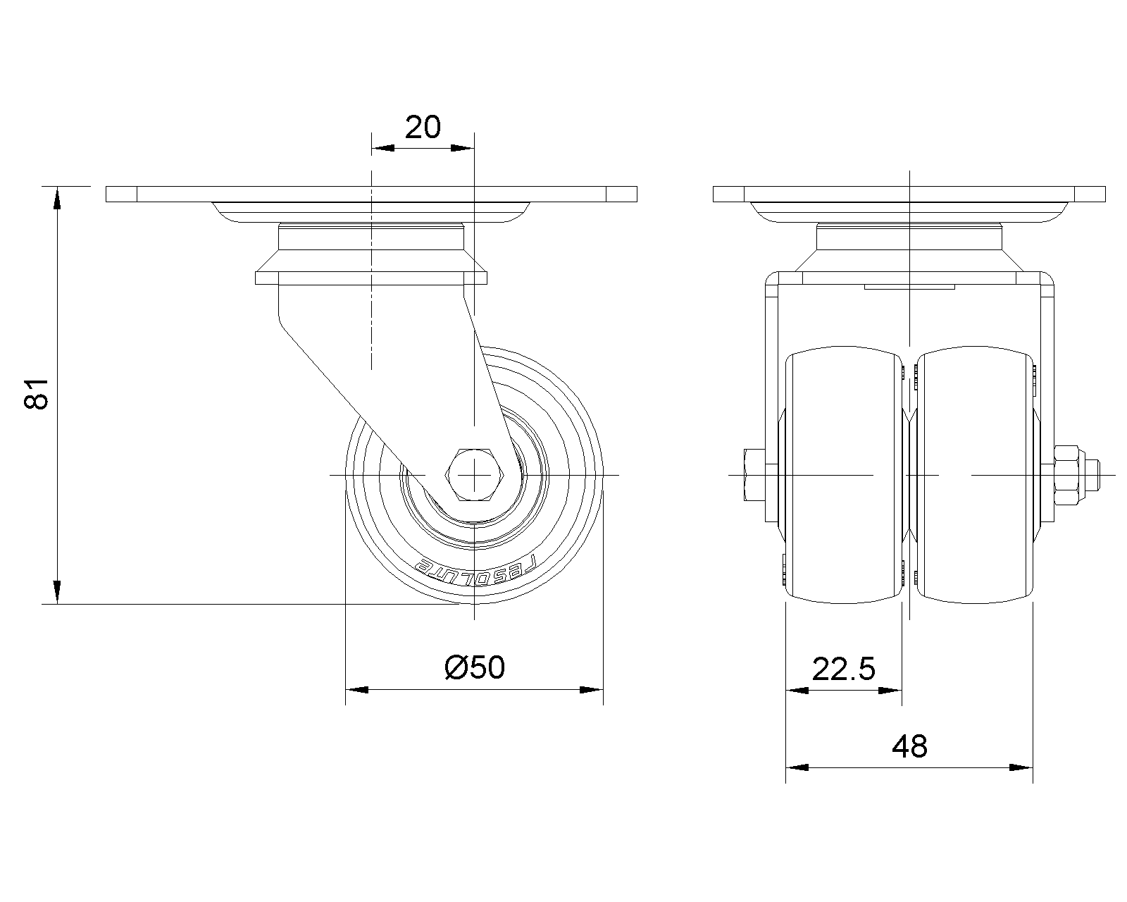 活动式脚轮,焊接钢板架,表面电镀 底板式安装装置,孔距80X60 耐冲击聚丙烯轮芯,热塑性弹性体(TPR)轮面 铣淺灰色,轮子轴承—精密滚珠 |