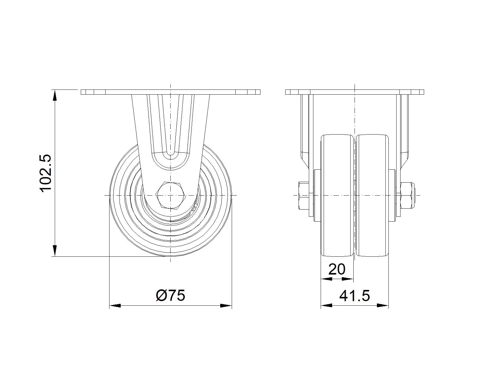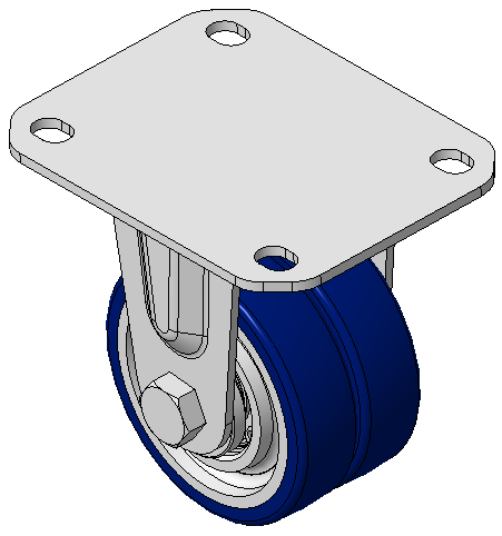 表面镀锌,底板式安裝裝置,孔距80x60 铸铁制轮芯,高品质聚氨酯轮面,铣蓝色 轮子轴承—特制的精密滾珠,降低运转阻力 ZQPU双轮,符合人体工学,更容易启动及转动 |