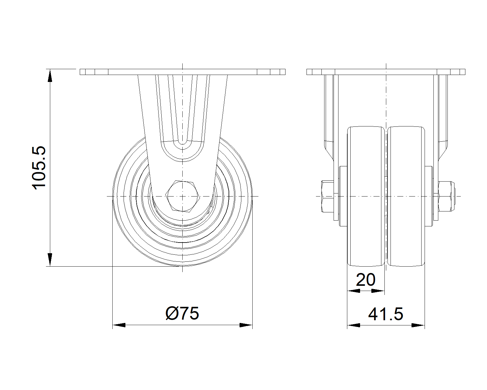 | 抗静电ZQPU轮(铣黑)轮径×轮宽 75x 20(41.5)mm |
