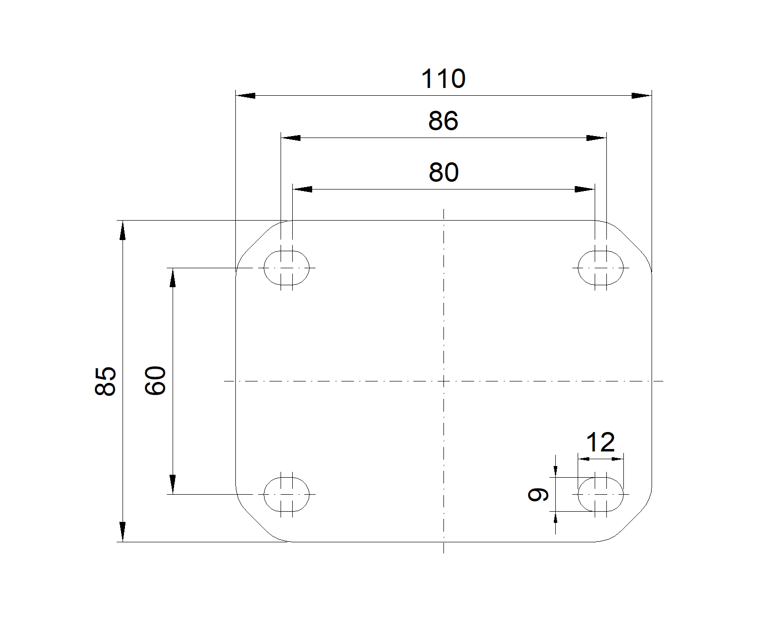 底板规格 110 x 85mm 底板孔距 80 x 60mm 底板孔径 12 x 9mm 总高 105.5mm 硬度 85±5° Shore A 荷重(动态) 250kgs |