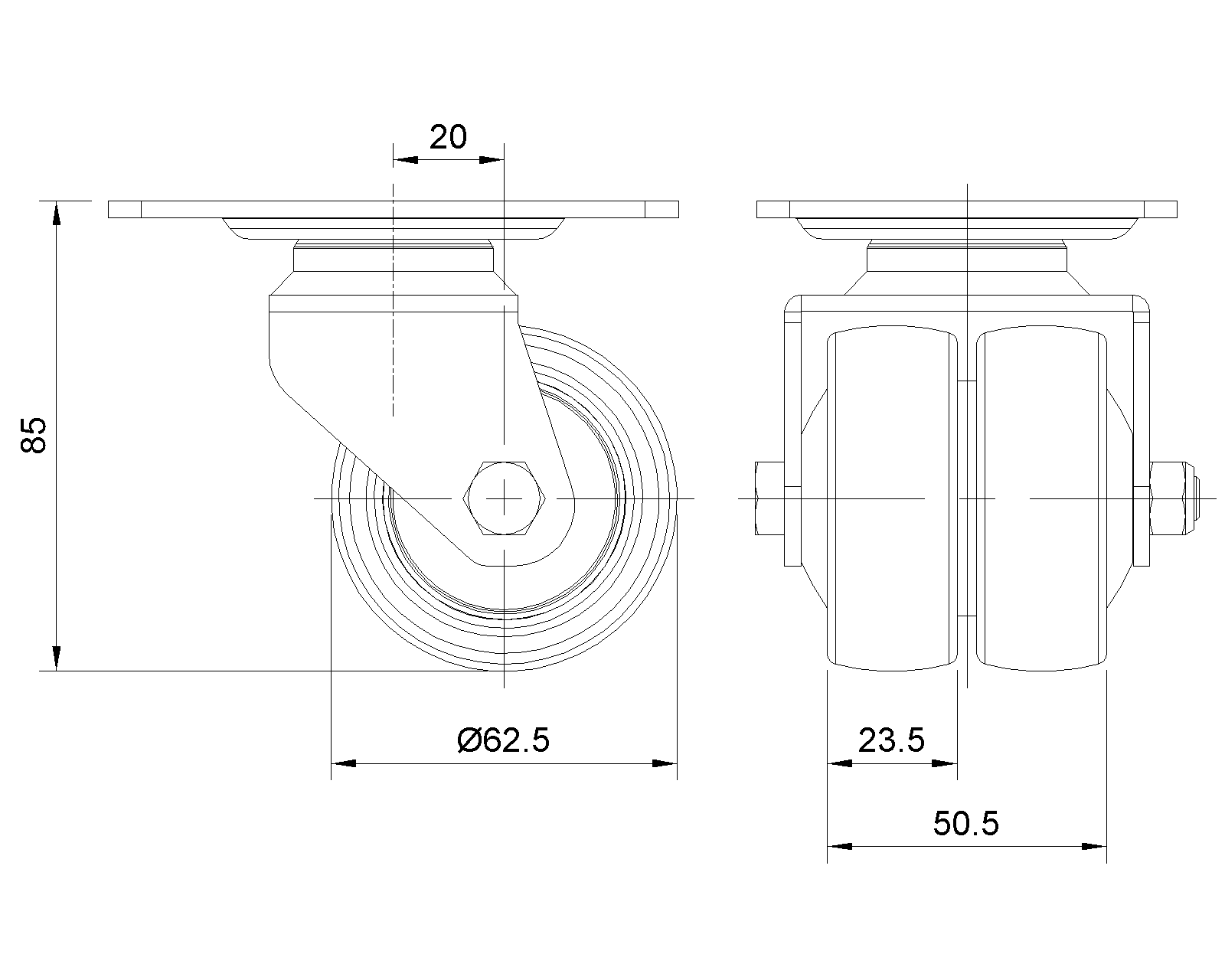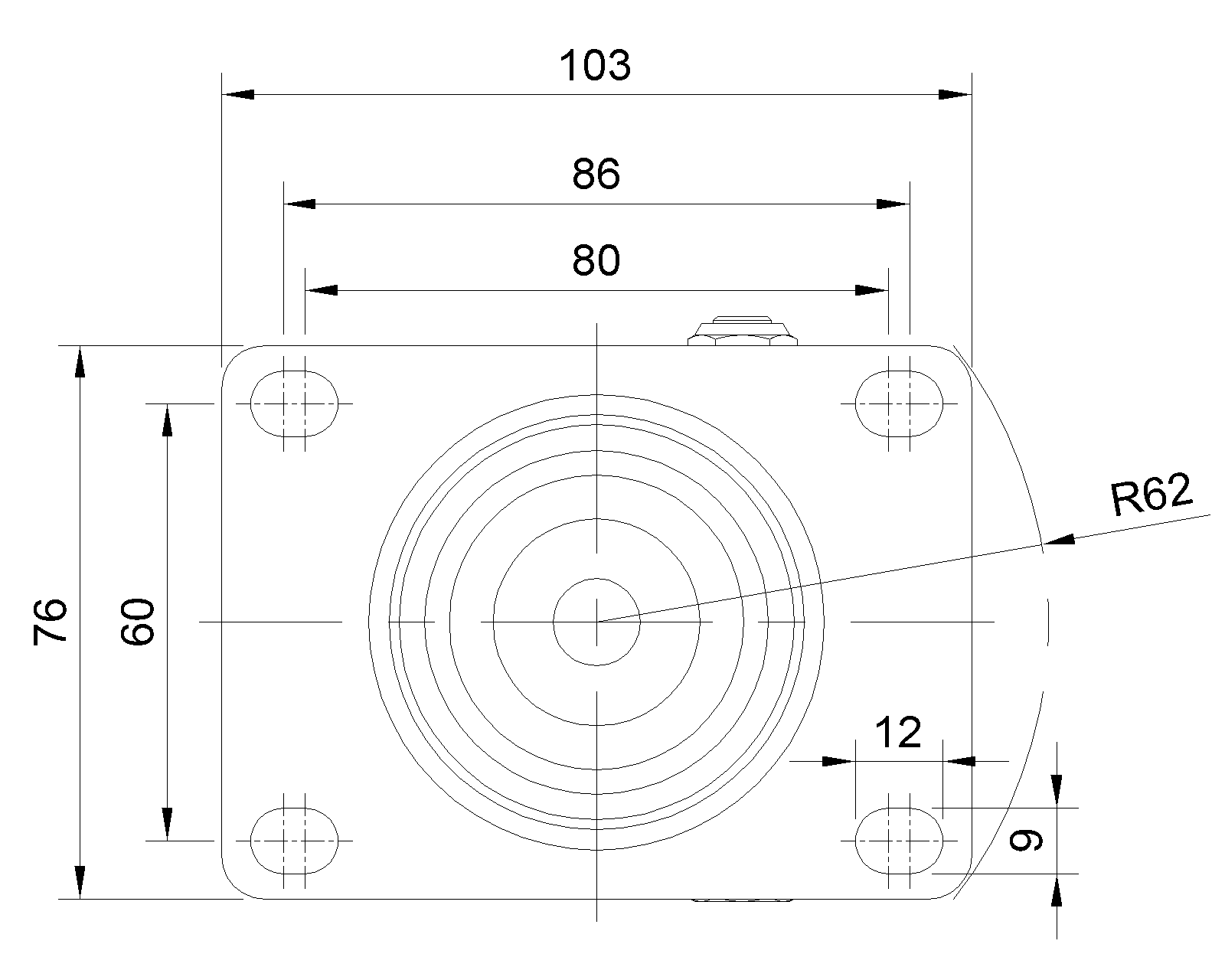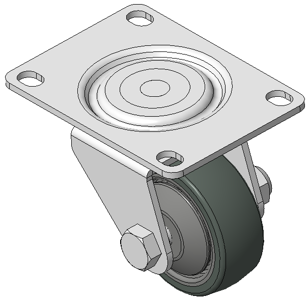 活动式脚轮,焊接钢板架,表面电镀 底板式安装装置,孔距80x60 耐冲击聚丙烯轮芯,热塑性弹性体(TPR)轮面 铣深灰色,轮子轴承—精密滚珠 |