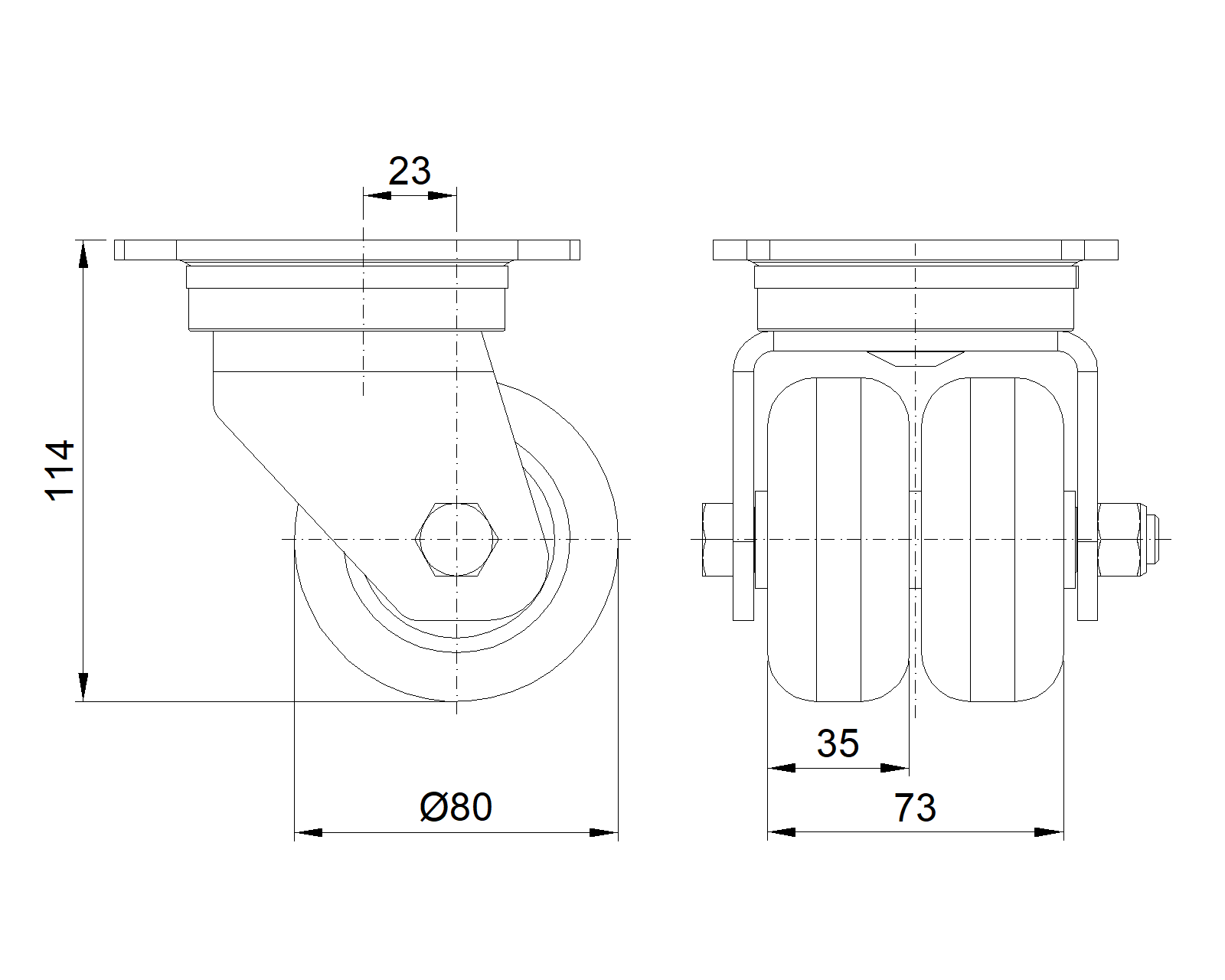QPU (brown flat) Wheel Diameter x Wheel Width 80 x 35 mm |