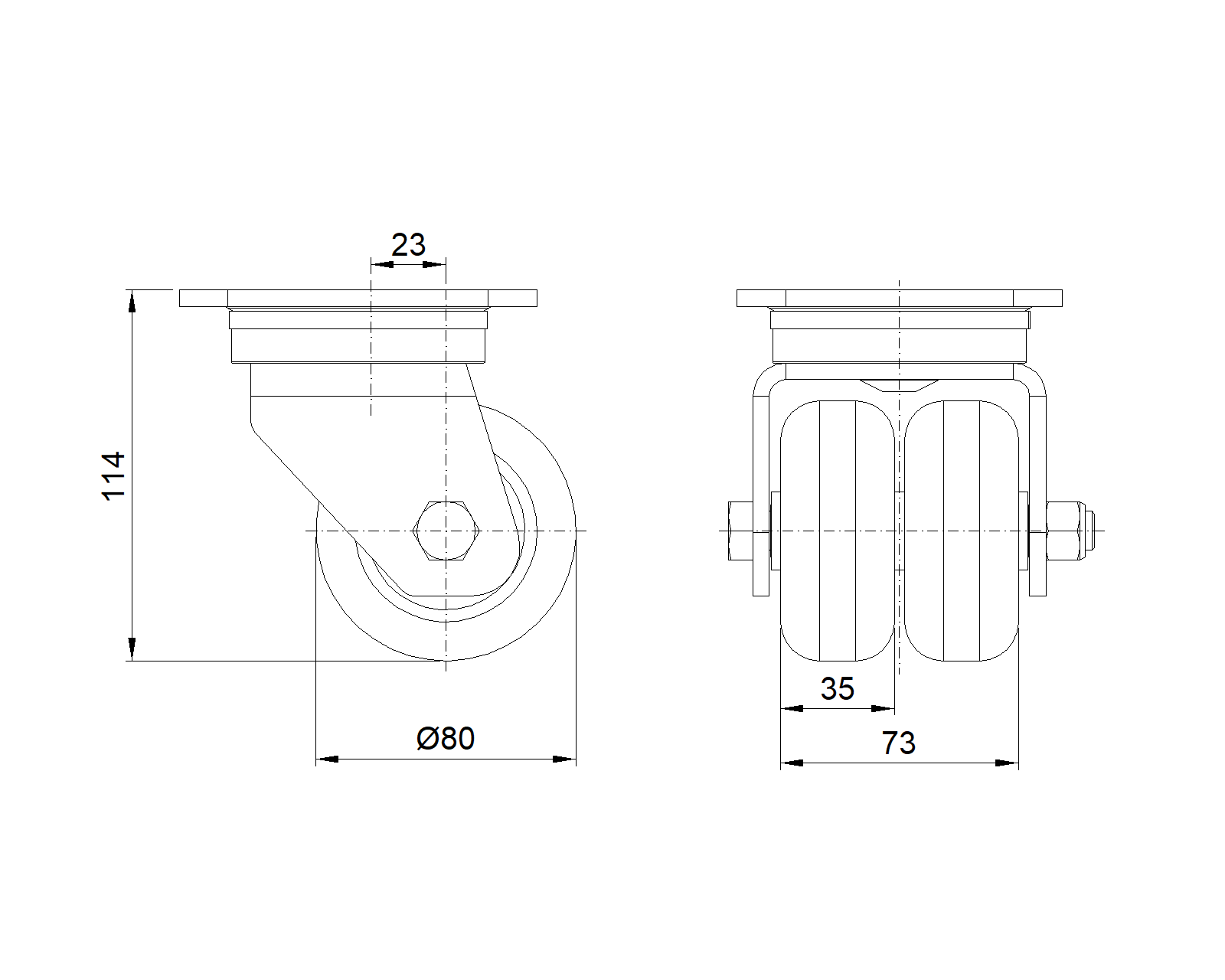 QPU (brown flat) Wheel Diameter x Wheel Width 80 x 35 mm |