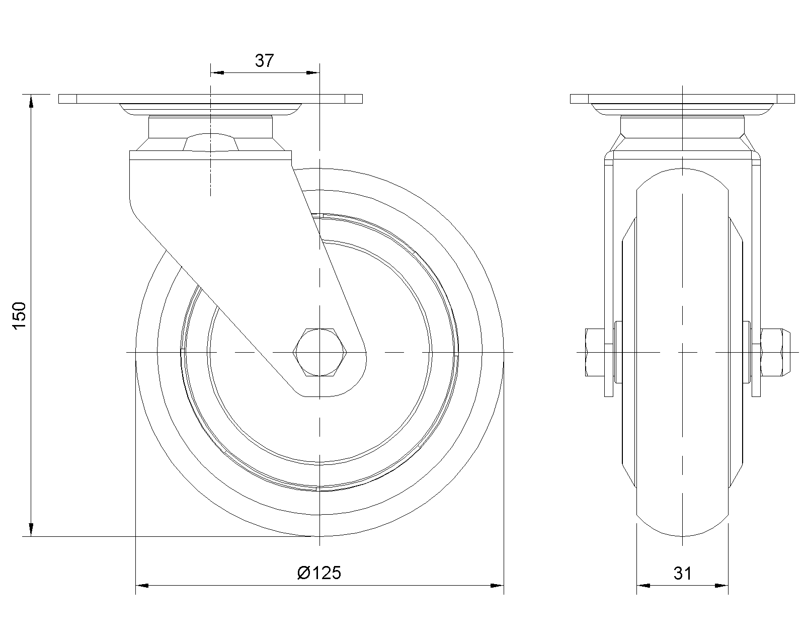 AQPU (grey round) Wheel Diameter × Wheel Width 125 x 31mm |