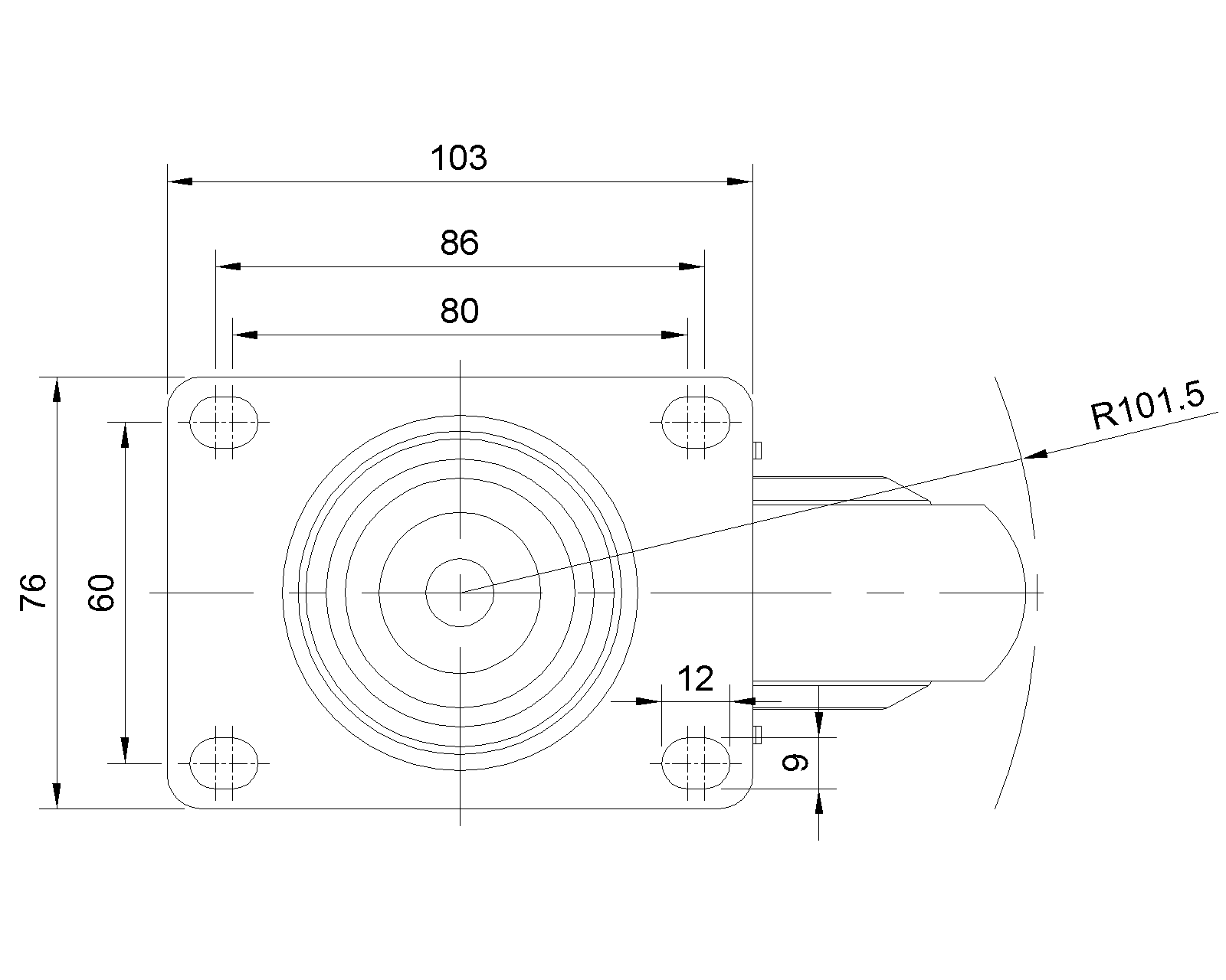 Swivel Caster with Welded Caster Fork Electroplated finish, Mounting Type - Top Plate, 80x60 Bolt Hole Spacing Cast Iron core, High Quality Polyurethane Wheel Tread, Cast Iron gray Bearings—Ball Bearings with special Anti-thread wheel cover |