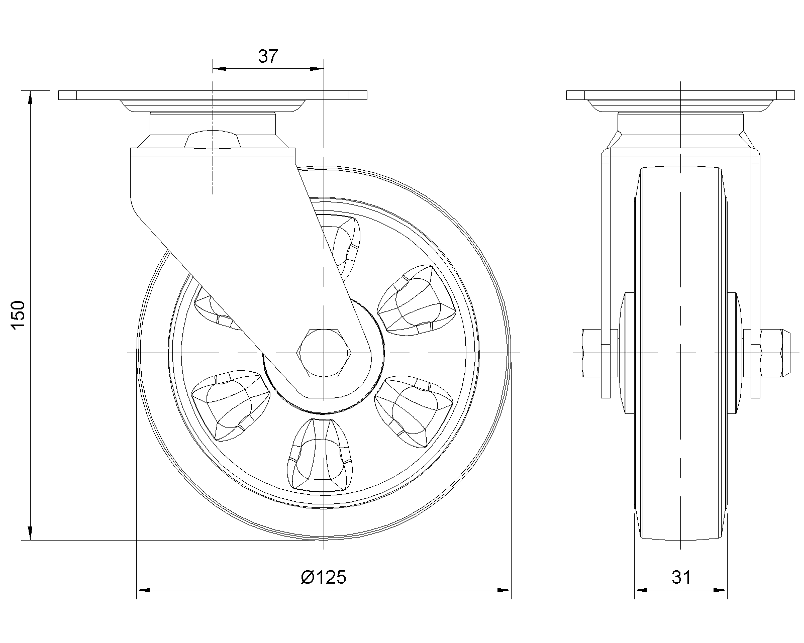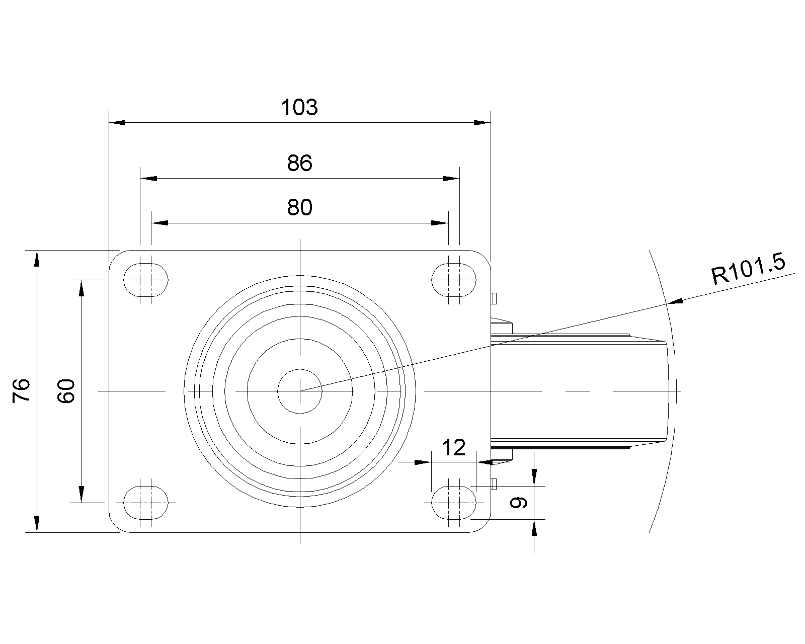 Swivel Caster, Welded Caster Fork, electroplated finish Mounting Type - Top Plate, 80x60 Bolt Hole Spacing Reinforced impact-resistant polypropylene Wheel Center, High-Quality Reinforced Polypropylene Rubber (TPR) Wheel Tread Cast Iron dark gray, Bearing—Ball Bearings |