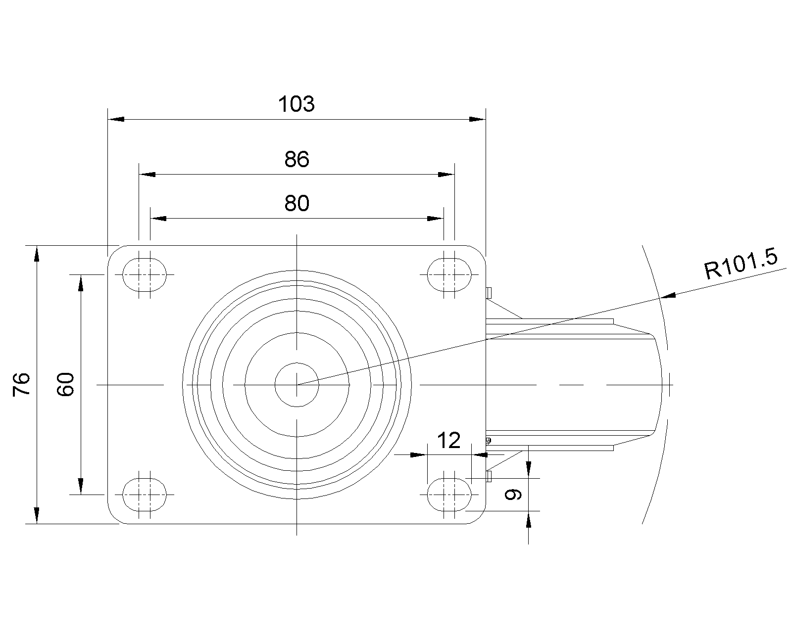 Swivel Caster, Welded Caster Fork, electroplated finish Mounting Type - Top Plate, 80x60 Bolt Hole Spacing High-Quality Impact-Resistant Polypropylene Wheel Center, High-Quality Reinforced Polypropylene Rubber (TPR) Wheel Tread Cast Iron dark gray, Bearing—Ball Bearings |