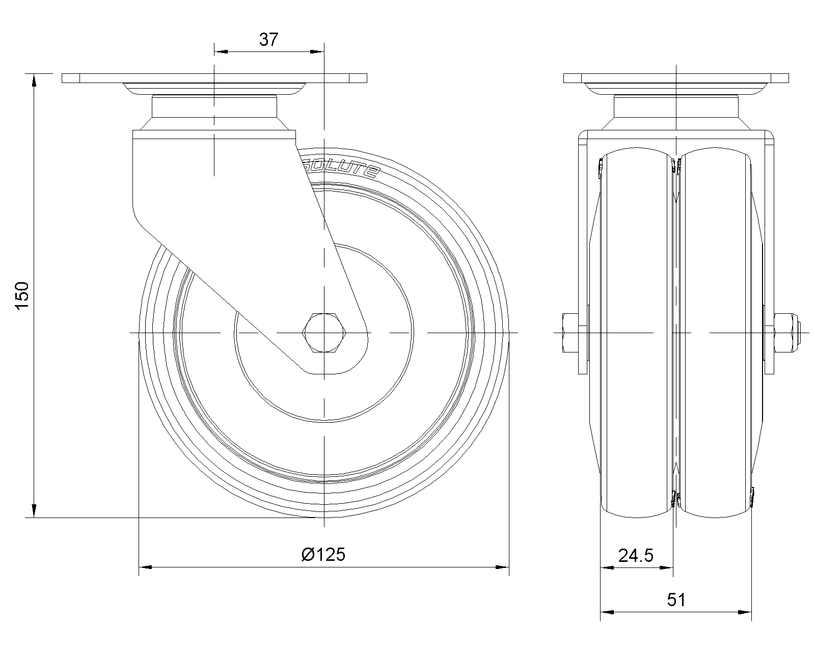 PPR E-Conductive (dark light gray) Wheel Diameter x Wheel Width 125 x 24.5mm |